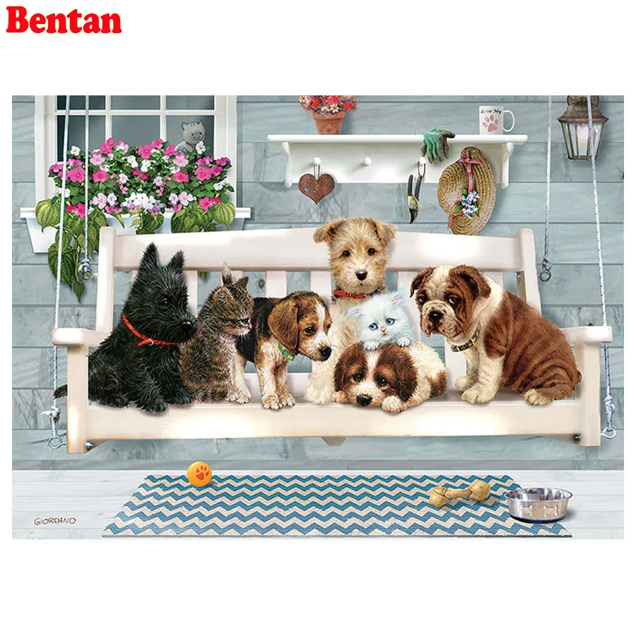 Камни в форме ромба круглый Алмазная вышивка, собаки семья 5d diy Алмазная Картина милые животные Алмазная мозаика Алмазная вышивка крестиком Декор для дома