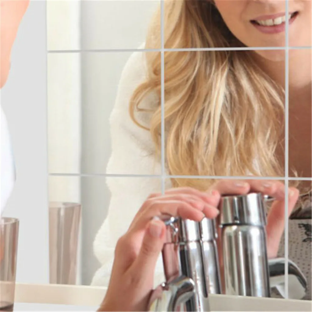 9 шт./компл., квадратная зеркальная плитка, самоклеящаяся наклейка на стену, Декор для дома и ванной комнаты