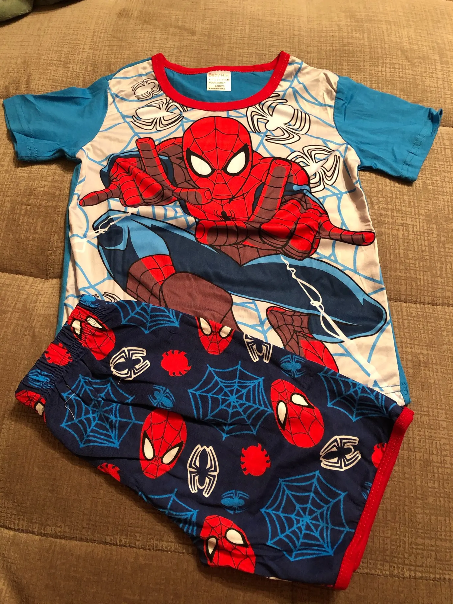 Детский пижамный комплект, одежда для маленьких мальчиков и девочек с изображением Микки Мауса, летние топ и штаны, детская одежда для сна, пижама-Человек-паук, пижамный комплект, футболки