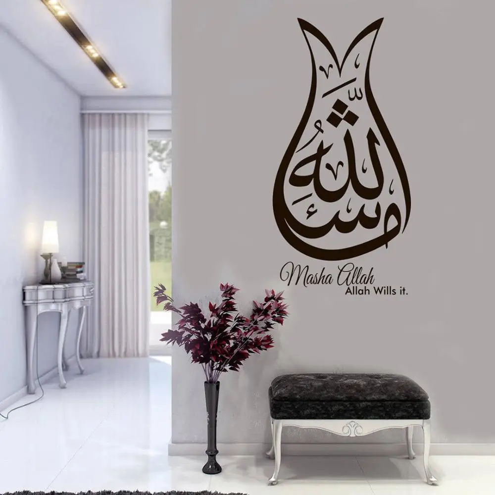 Маша Аллах ваза Форма исламской каллиграфии стены стикеры водонепроницаемый съемный виниловые наклейки на стены домашний декор для гостиная
