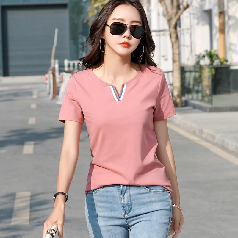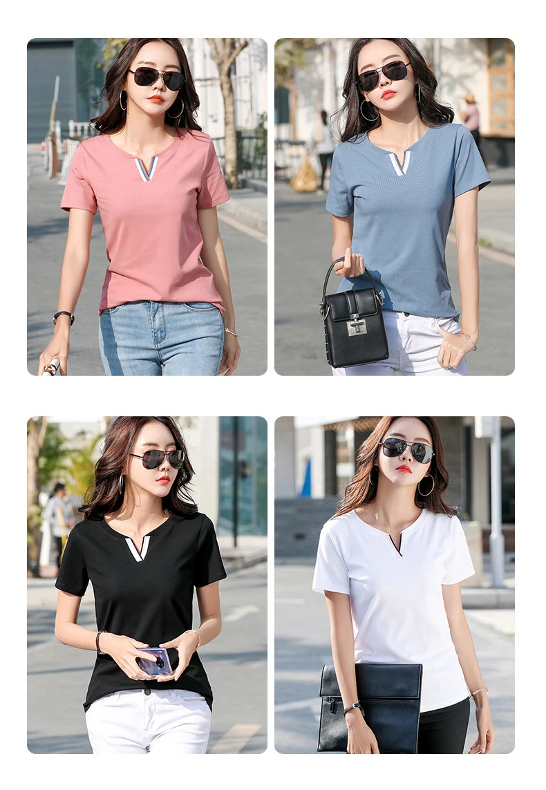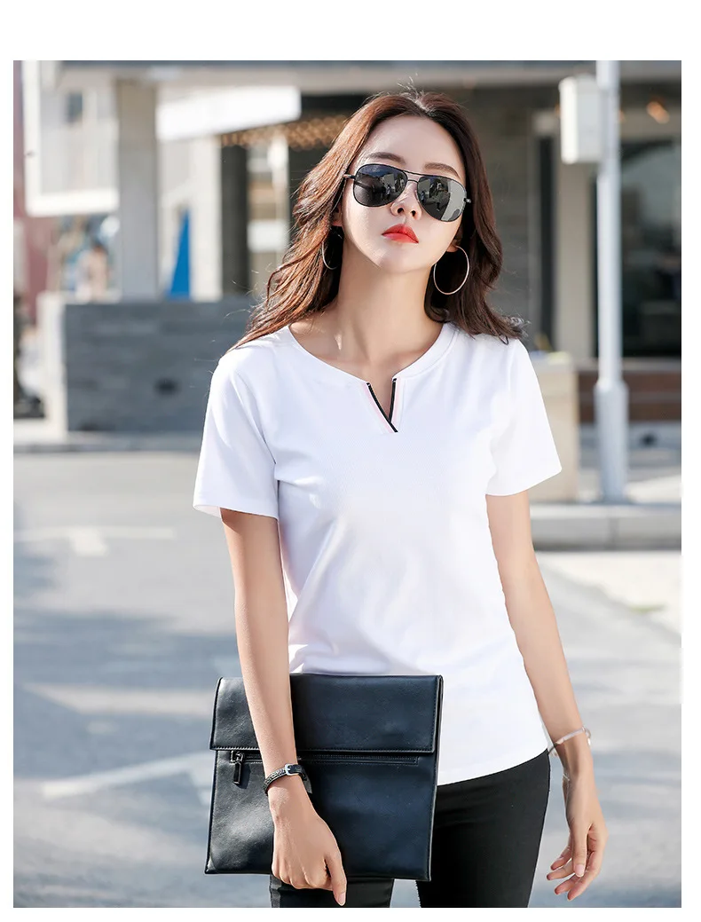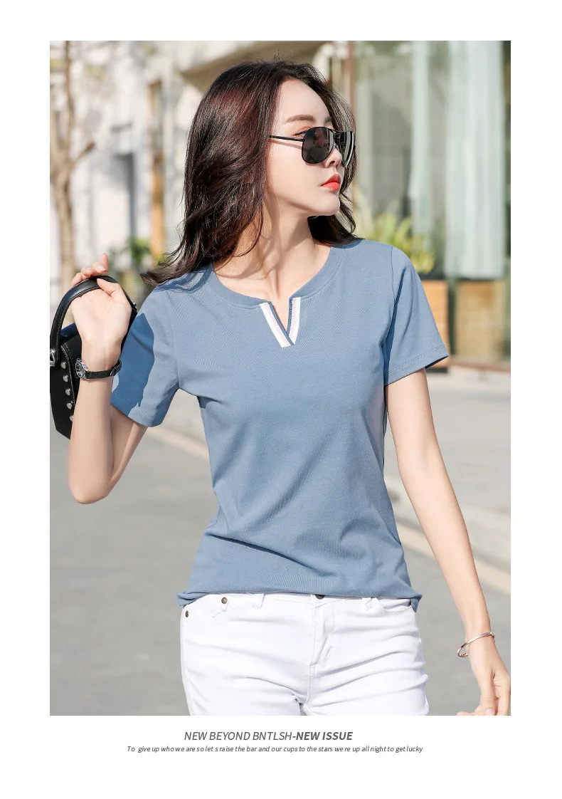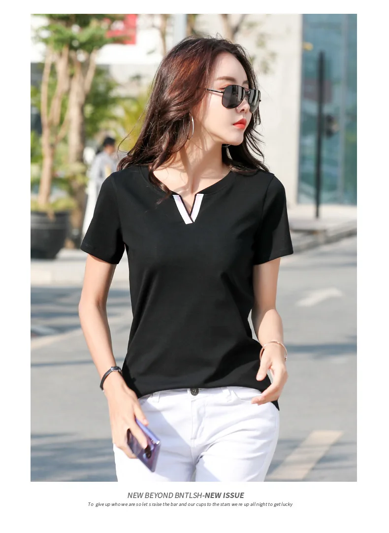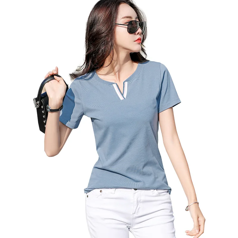 Новая хипстерская хлопковая футболка, женские Лоскутные Летние футболки контрастных цветов с V-образным вырезом, облегающая одежда, Женская футболка для женщин