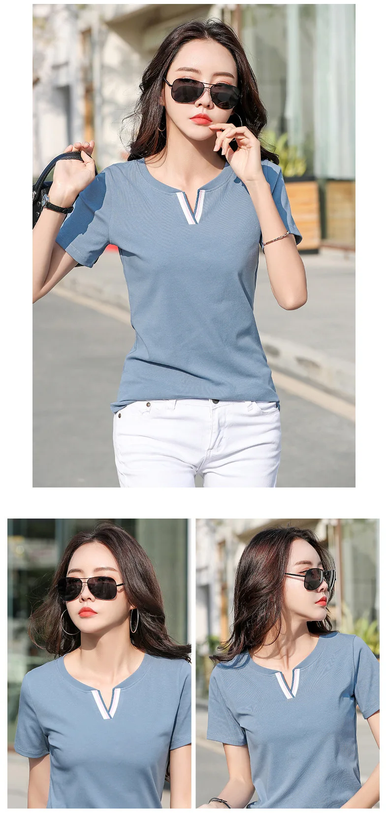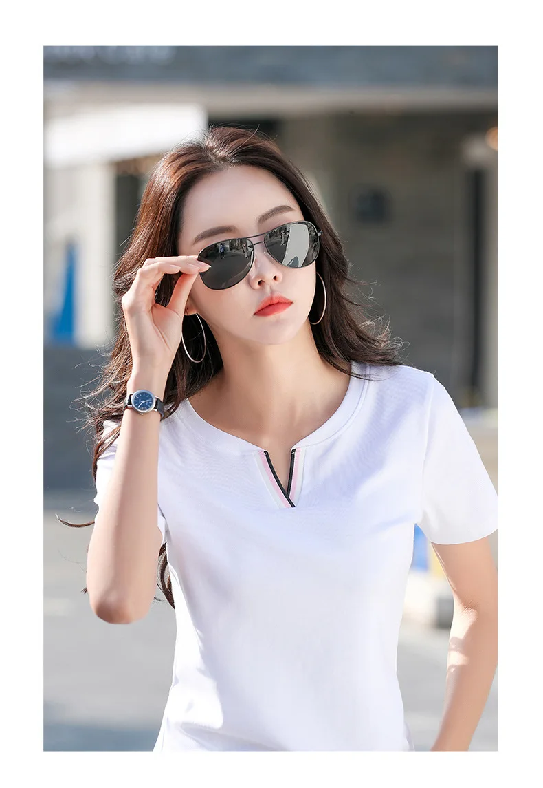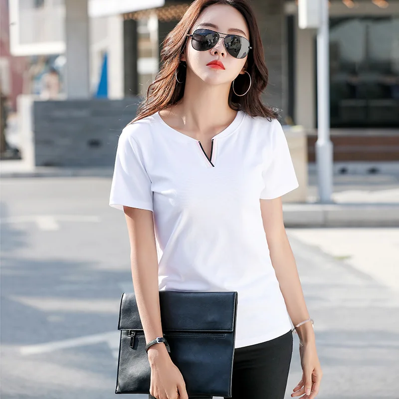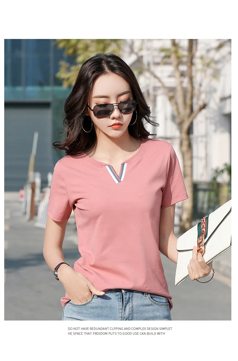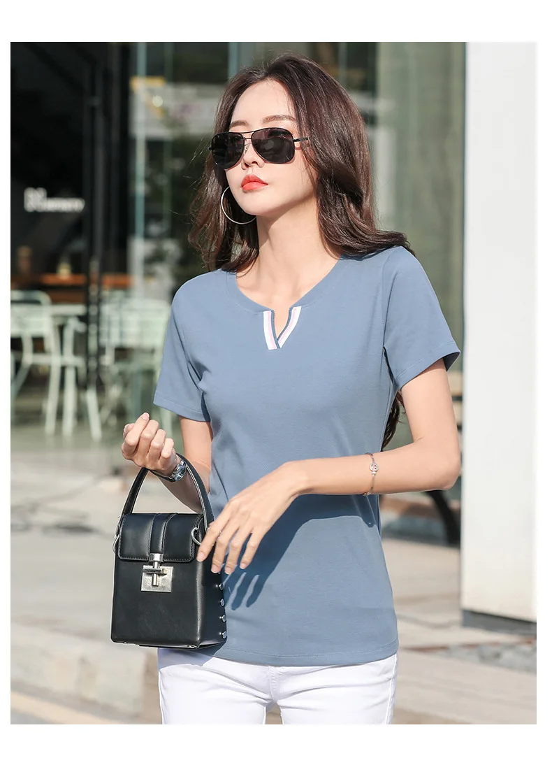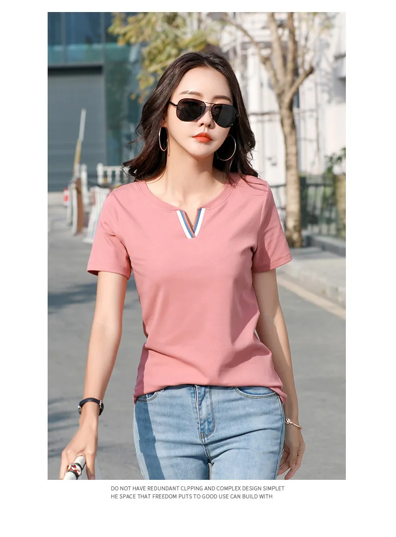 Новая хипстерская хлопковая футболка, женские Лоскутные Летние футболки контрастных цветов с V-образным вырезом, облегающая одежда, Женская футболка для женщин