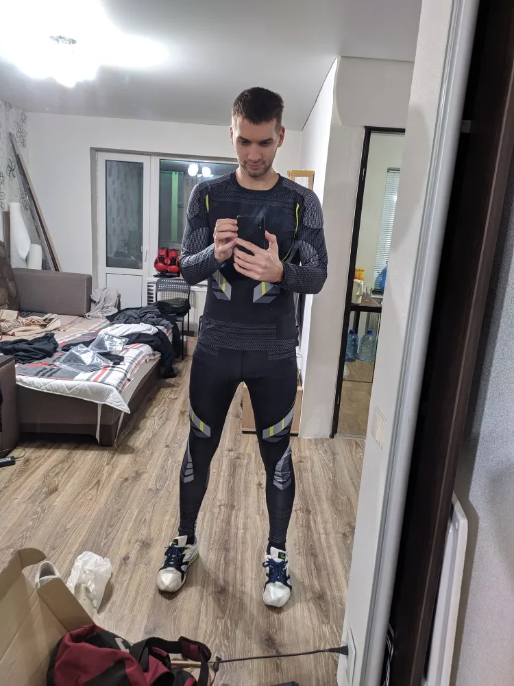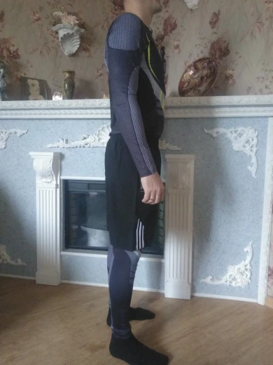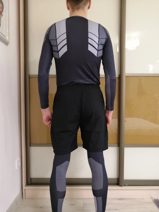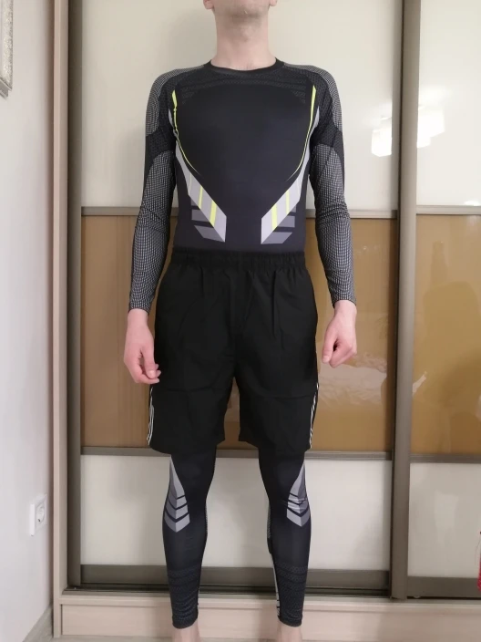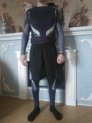 Костюм довольно хороший, размер хорошо подходит, хотя рукава и ноги длиннее, чем нужно. Шорты посредственного качества imho.