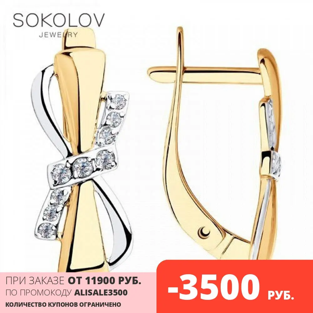 Серьги SOKOLOV из золота с фианитами, Золото, 585, Женские, Серьги ...