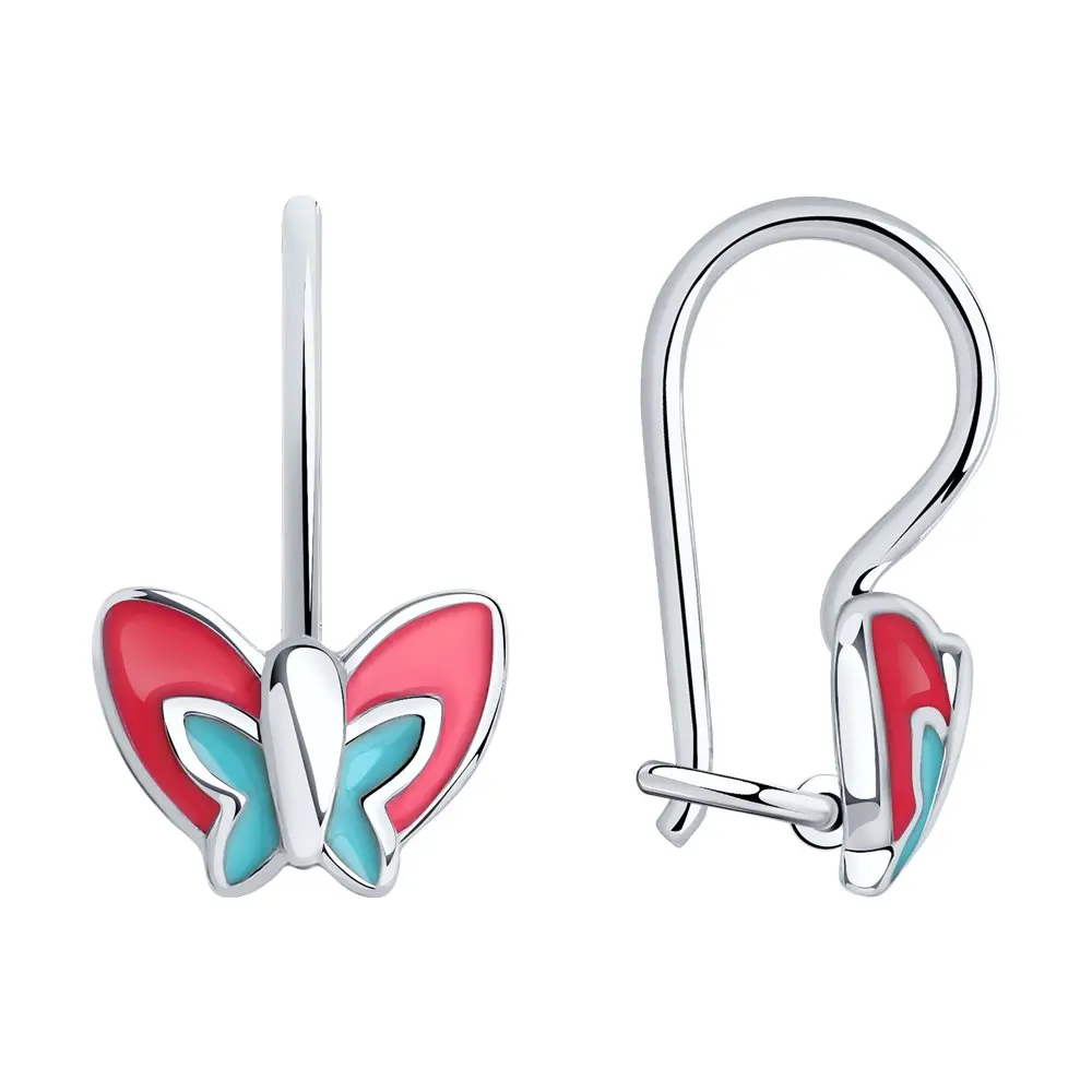 Серебряные серьги Бабочки SOKOLOV, Серебро, 925, Детские, Серьги 2022 тренд, Оригинальная продукция