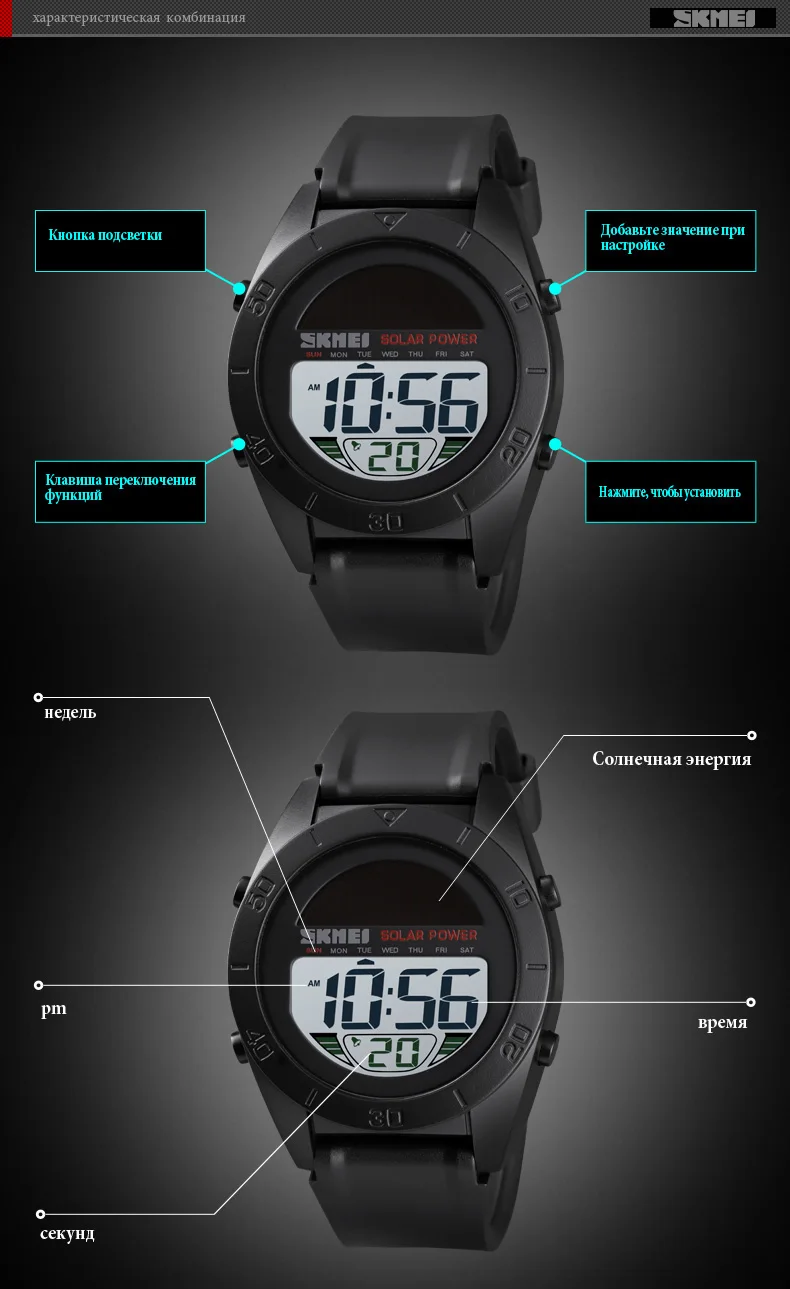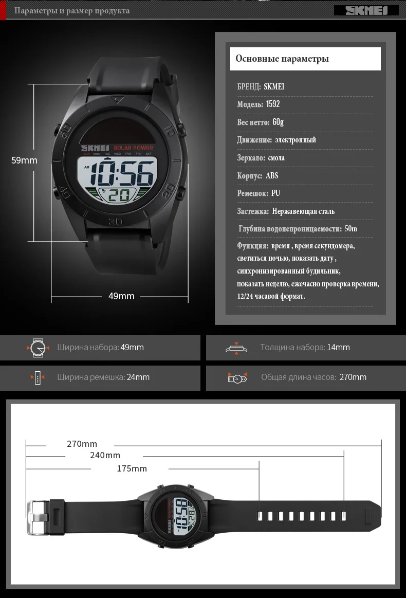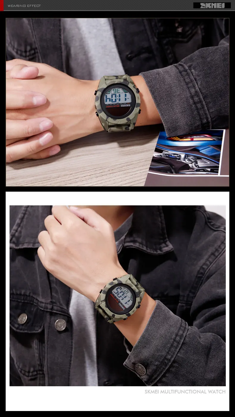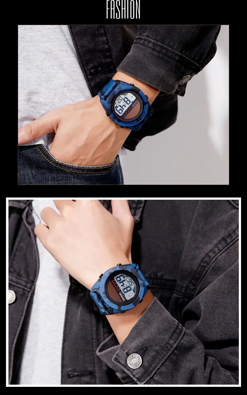 Часы наручные SKMEI Мужские Цифровые, модные многофункциональные мощные водонепроницаемые, в спортивном стиле, с будильником, 1592