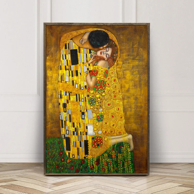 The Kiss by Gustav Климт Картина из холста Изобразительное искусство печать, Картина Настенная для гостиной домашний Декор подарок на день Святого Валентина
