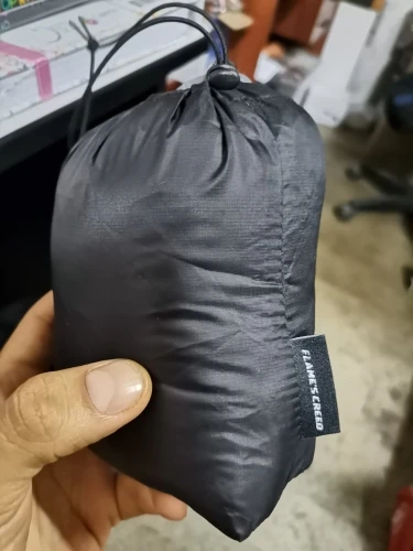 Очень компактный и достаточно теплый. Он упаковывается как маленький бейсбол.