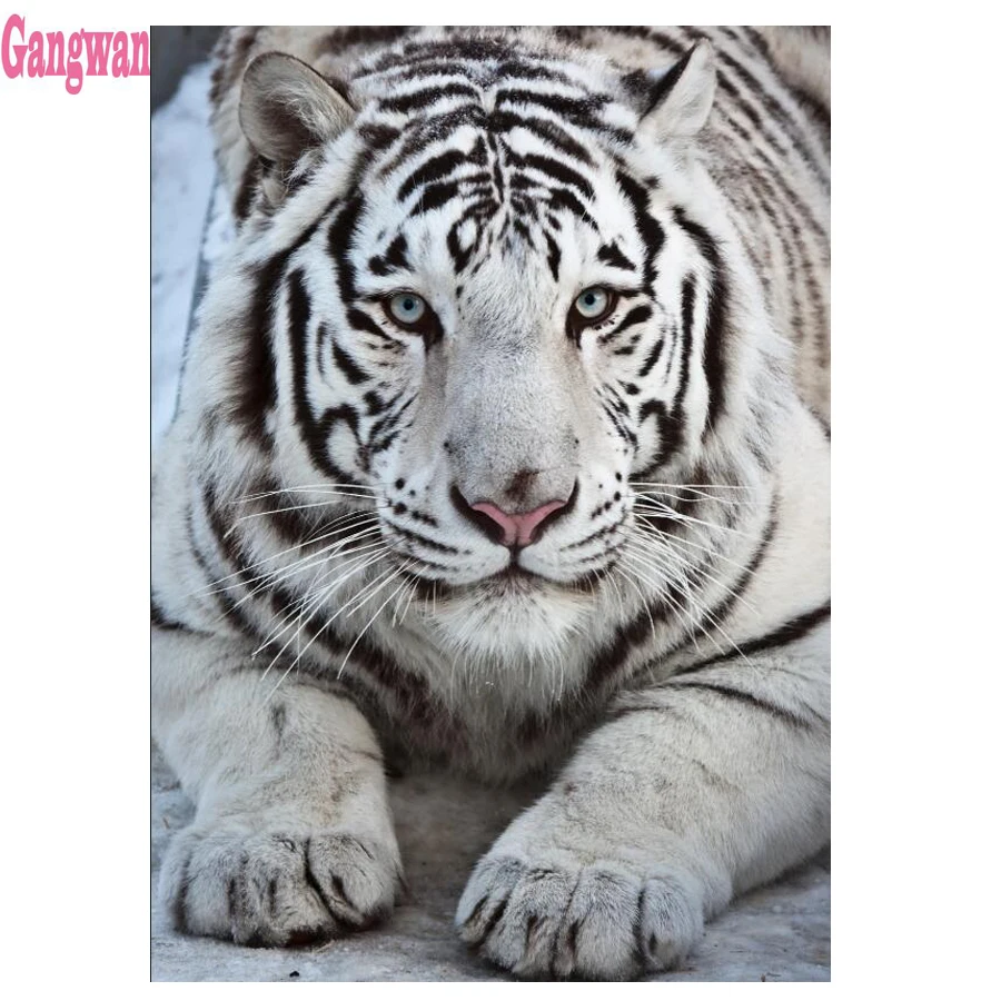 5d алмазная живопись, дикие животные, полноразмерная 3d картина из алмазов, мозаика-пазл, алмазная вышивка, круглый белый тигр, фото искусство