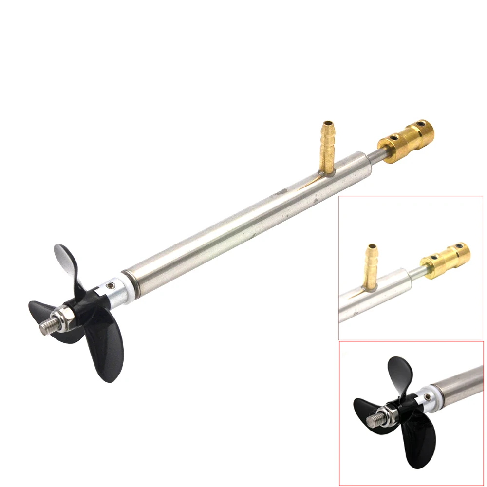 1 шт., 4 мм Комплект деталей вала для лодки на радиоуправлении, стальной вал + втулка вала + 3-лопастной пропеллер + медная муфта с масляным соплом для лодки на радиоуправлении
