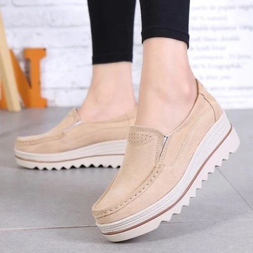 Мокасины женские замшевые, кроссовки на платформе, без застежки, плоская подошва, лоферы, повседневная обувь, весна