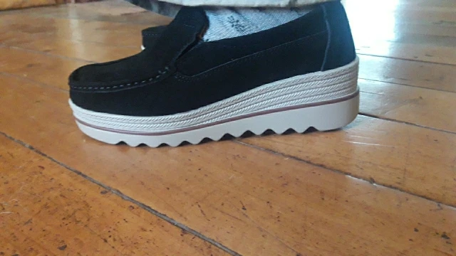 Обувь хорошая, удобная, из хорошего материала, в соответствии с ценой, моя мама любила ее, она была доставлена после расчетного времени. Пахнет, но не неприятно. Что касается размера, 24,5 см подходит только для размера 38, обувь с использованием будет стоить на несколько миллиметров больше, но если вы хотите носить ее с толстыми носками, Я рекомендую рассмотреть покупку немного больше. Я доволен продуктом, спасибо.