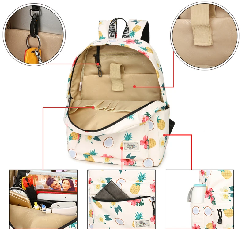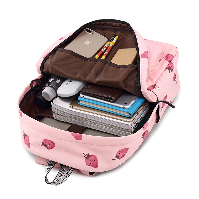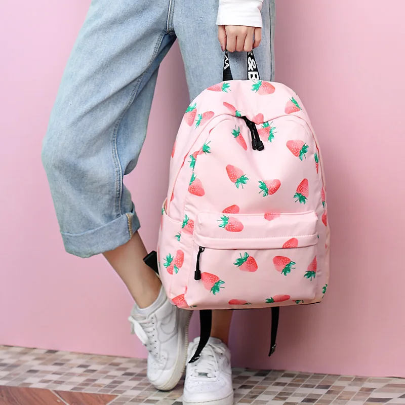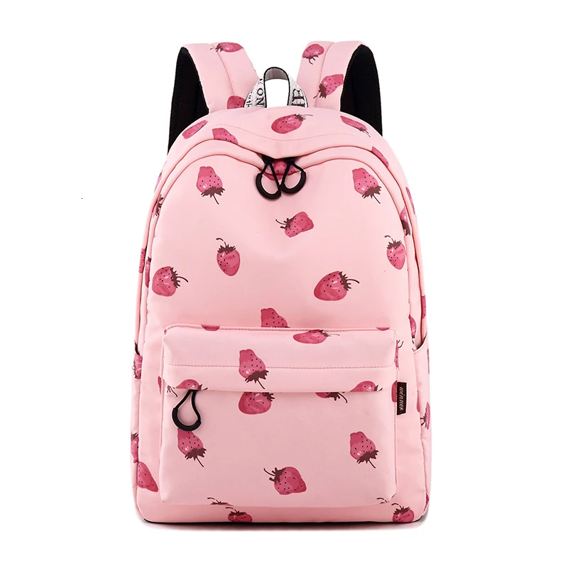 Простой винтажный холщовый рюкзак в китайском стиле, Женская нейлоновая сумка с цветочным принтом клубники, школьные сумки для ноутбука для девочек