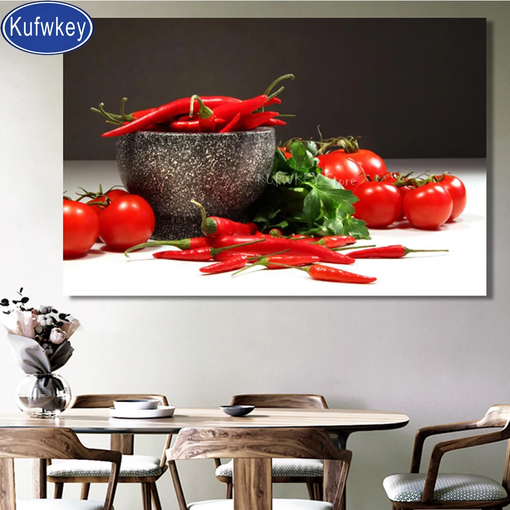 Алмазная картина сделай сам, картина с красным чили, овощами, полная выкладка, квадратная, круглая, алмазная вышивка крестиком, большая мозаика, украшение для столовой