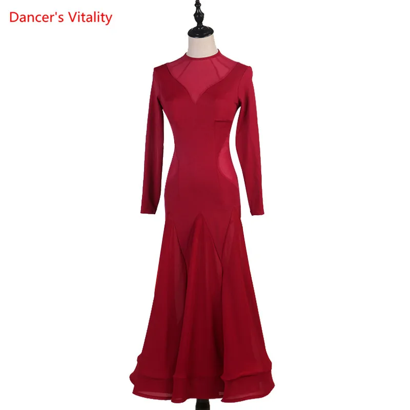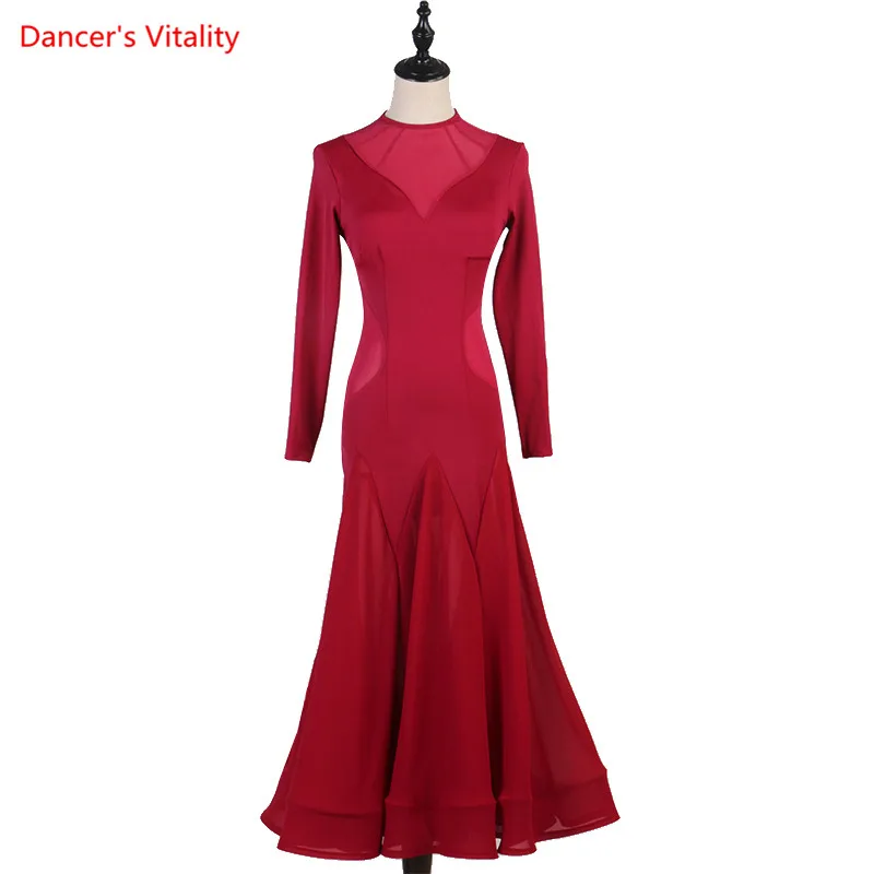 Женское платье для бальных танцев, Сетчатое платье с длинным рукаво...