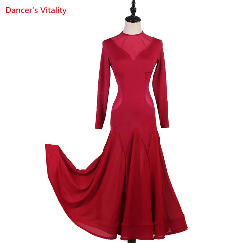 Современная Одежда для танцев Для женщин бальных танцев тренировочная юбка вальс Румба Танго выступление костюм, платье для девочек с юбкой платье