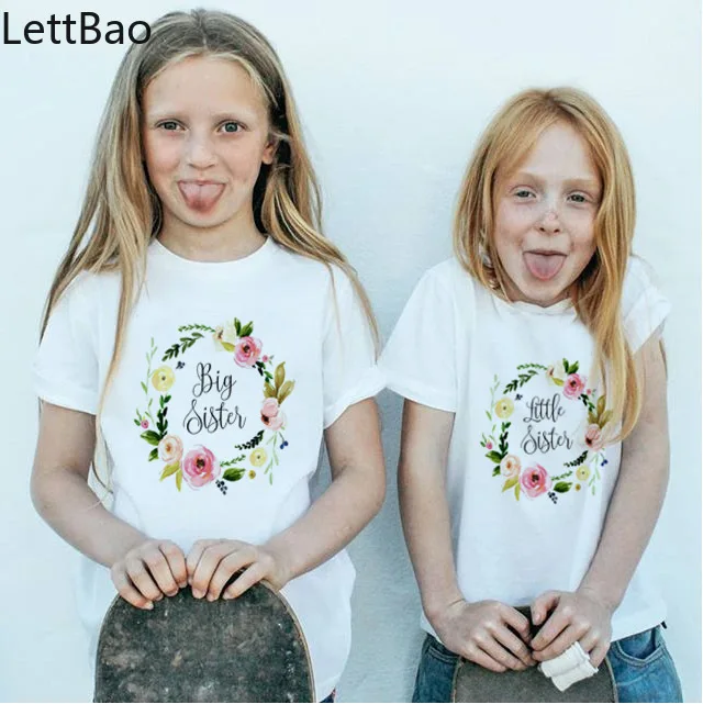 Летняя Забавная детская футболка с изображением милой сестры и старшей сестры, белая футболка в стиле Харадзюку для маленьких девочек, детская графическая одежда