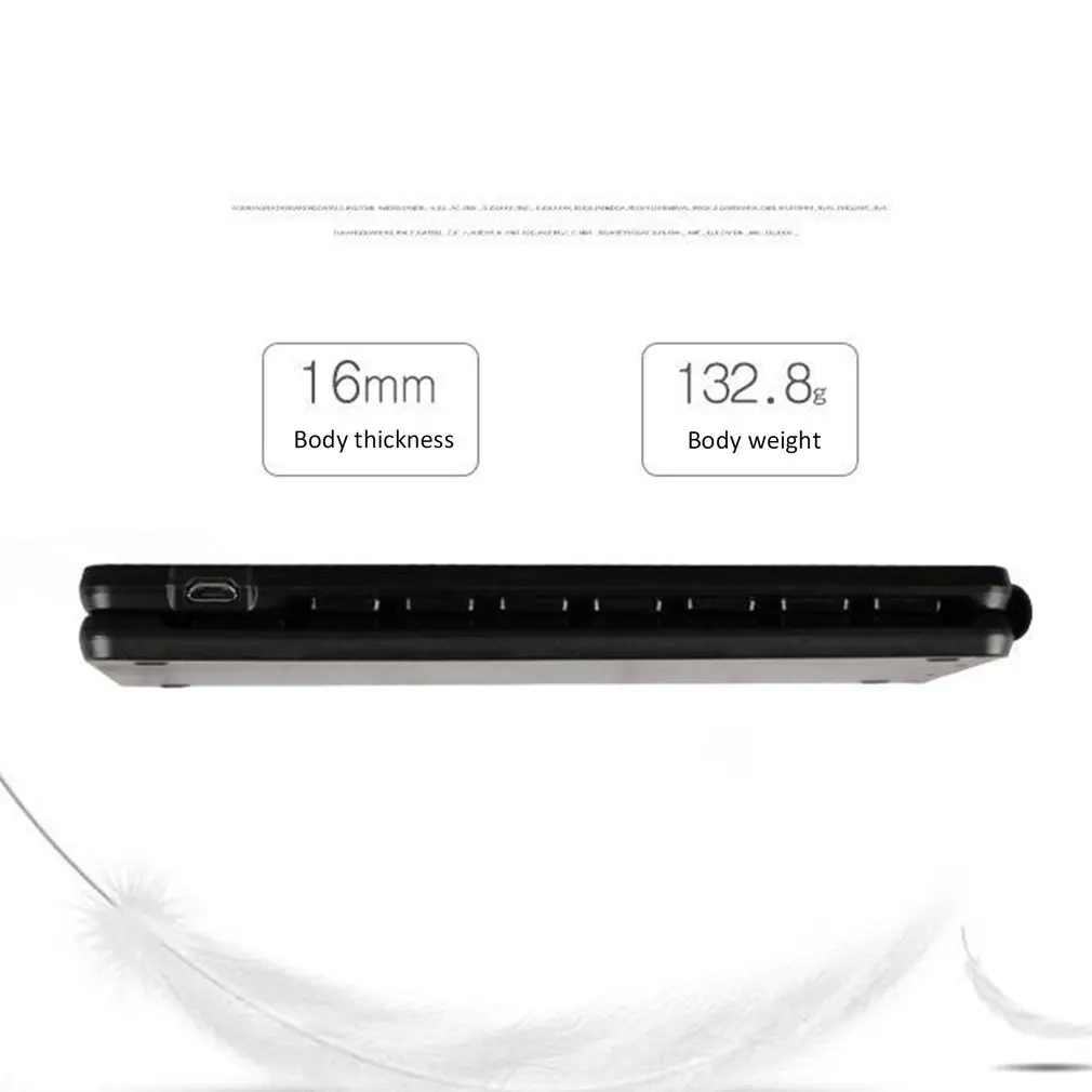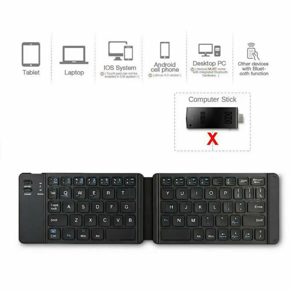 Особенности:1. Дизайн ножниц-переключателейДизайн Ножничного переключателя делает его удобным для ввода и Нет шума, обеспечивая вам отключение звука, используя опыт.2. Долгое время работыКлавиатура принимает встроенный литиевый аккумулятор емкостью 302323 мАч, который может поддерживать работу в течение 20 часов и 30 дней в режиме ожидания.3. СкладнойКлавиатура складная и компактная. Вы можете носить с собой легкую и мини-клавиатуру в любое место. Он очень подходит для путешествий.4. Классический цветКлассический белый цвет и черный цвет на ваш выбор. Он идеально подойдет для вашего стиля цифрового устройства.5. УниверсальныйКлавиатура совместима с большинством планшетов, компьютеров и телефонов. И вы можете использовать метод ввода Wubi с помощью клавиатуры, в системе ios, Android и Windows.Описание:Plug and play-поддержка подключения blueteeth.Эргономичный дизайн, внешний вид простой и стильный.Технические характеристики:Основной Материал: АБС-пластикКоличество клавиш: 67 клавишСтандарт интерфейса: Bluetooth 3,0Характеристики полимерного аккумулятора: 302323 мАчРабочее напряжение: 3,0 ~ 4,2 вСрок службы кнопок: 3 миллиона нажатийЭффективное расстояние использования: 10 метровКомбинированный размер: 150*58*10 ммРасширенный размер: 286*89*05 ммЦвет: черный, белый (опционально)Посылка включает в себя:1x клавиатура1x кабель1x руководствоПримечания:1. Из-за разницы между различными мониторами, изображение может не отражать фактический цвет изделия. Мы гарантируем, что модель реального изделия не отличается от представленной на фото.2. Возможны незначительные отклонения в размерах из-за различных измерений вручную.