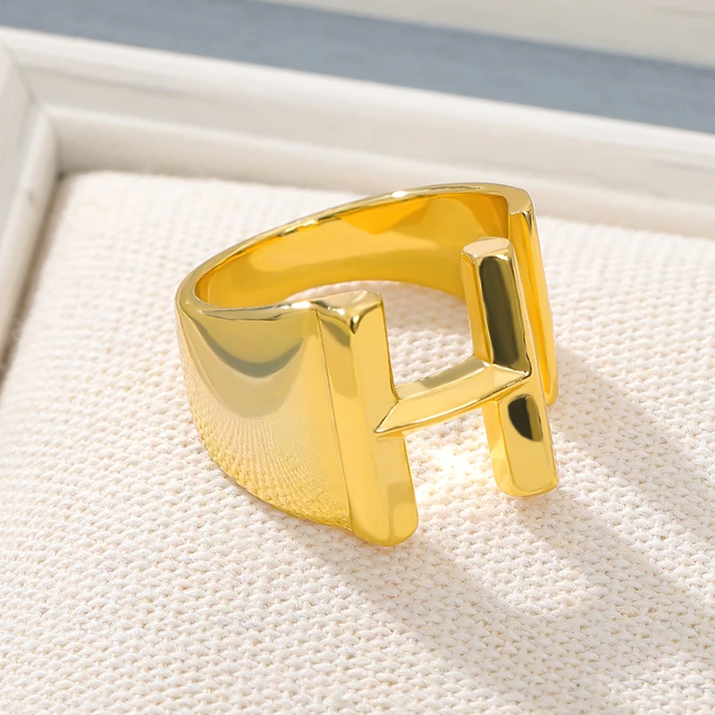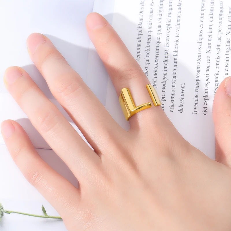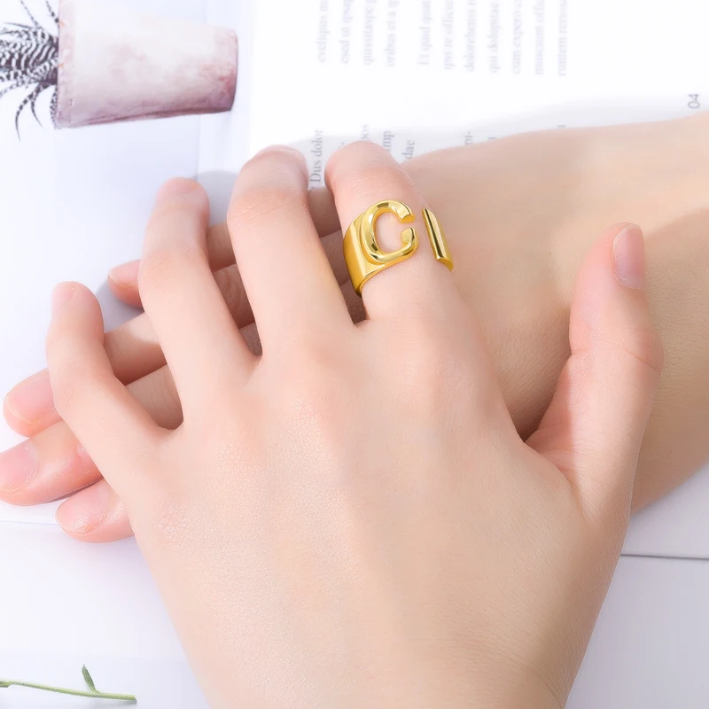 Кольцо регулируемое с инициалом под золото женское, A-Z из нержавею...