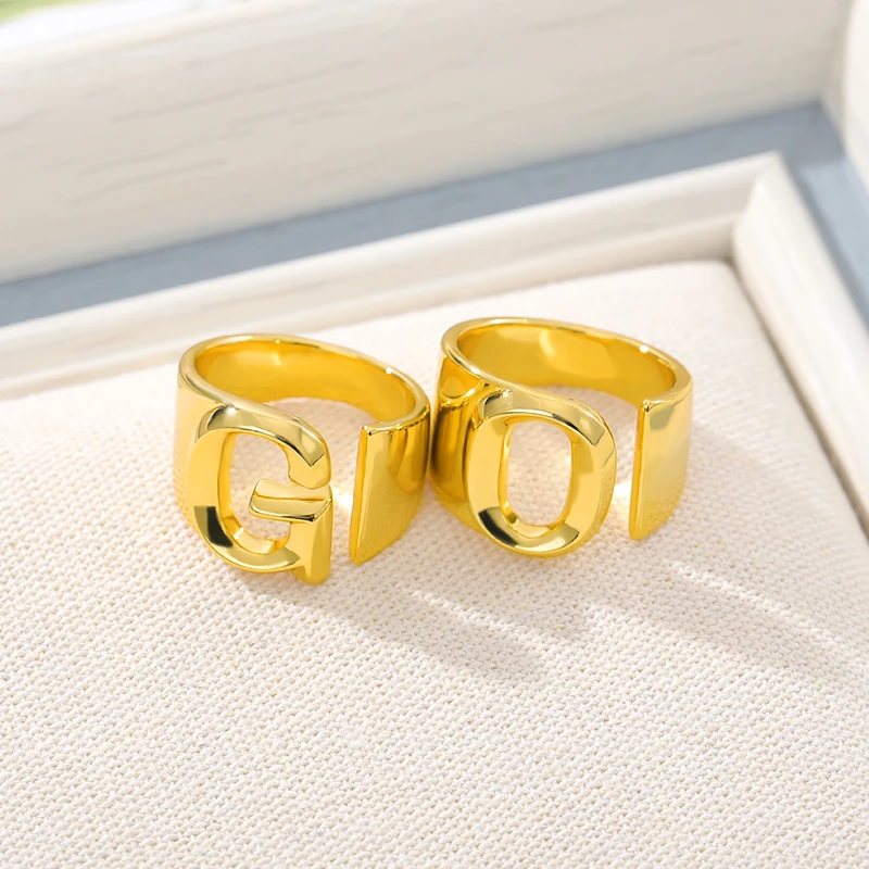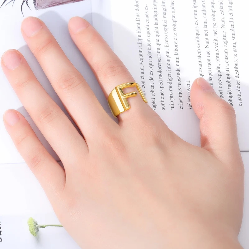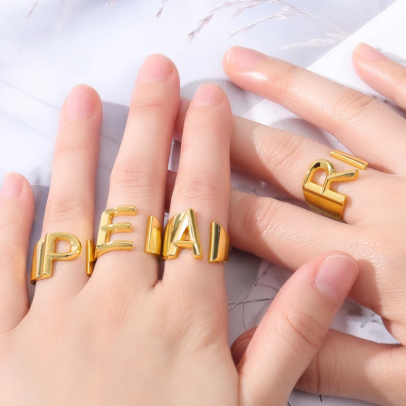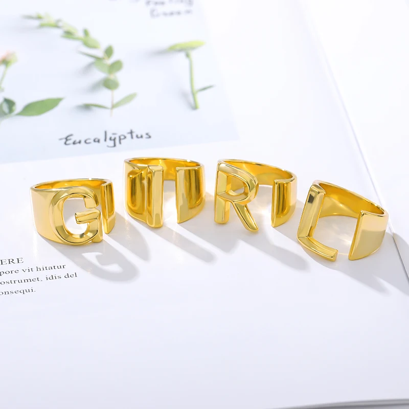 Медное полое Золотое кольцо с буквами A-Z, с инициалами, именем, алфавитом, женское, регулируемое, праздничная бижутерия с кольцами год, день рождения