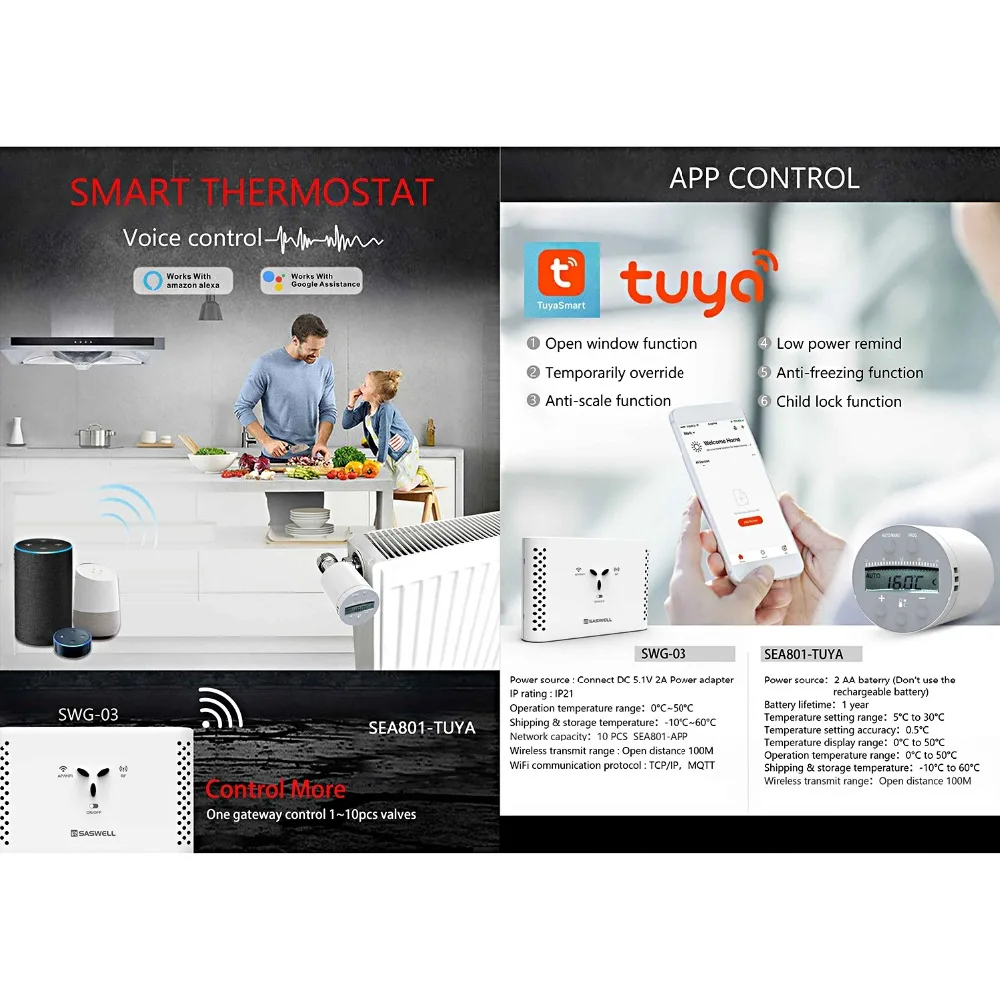 Термостатический клапан радиатора SEA801-Tuya, регулятор температуры для водыэлектрического теплого пола, для работы с Alexa Google