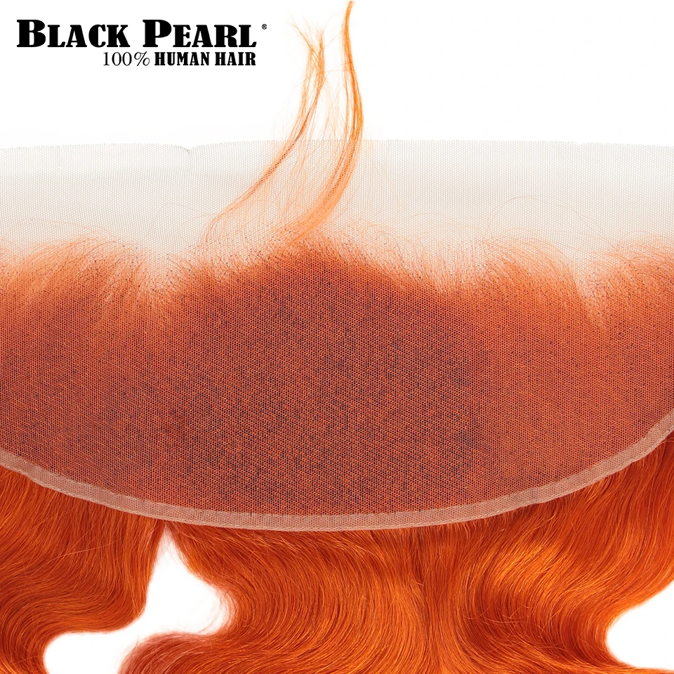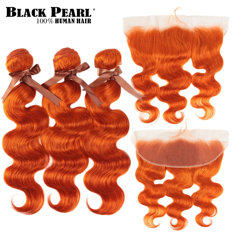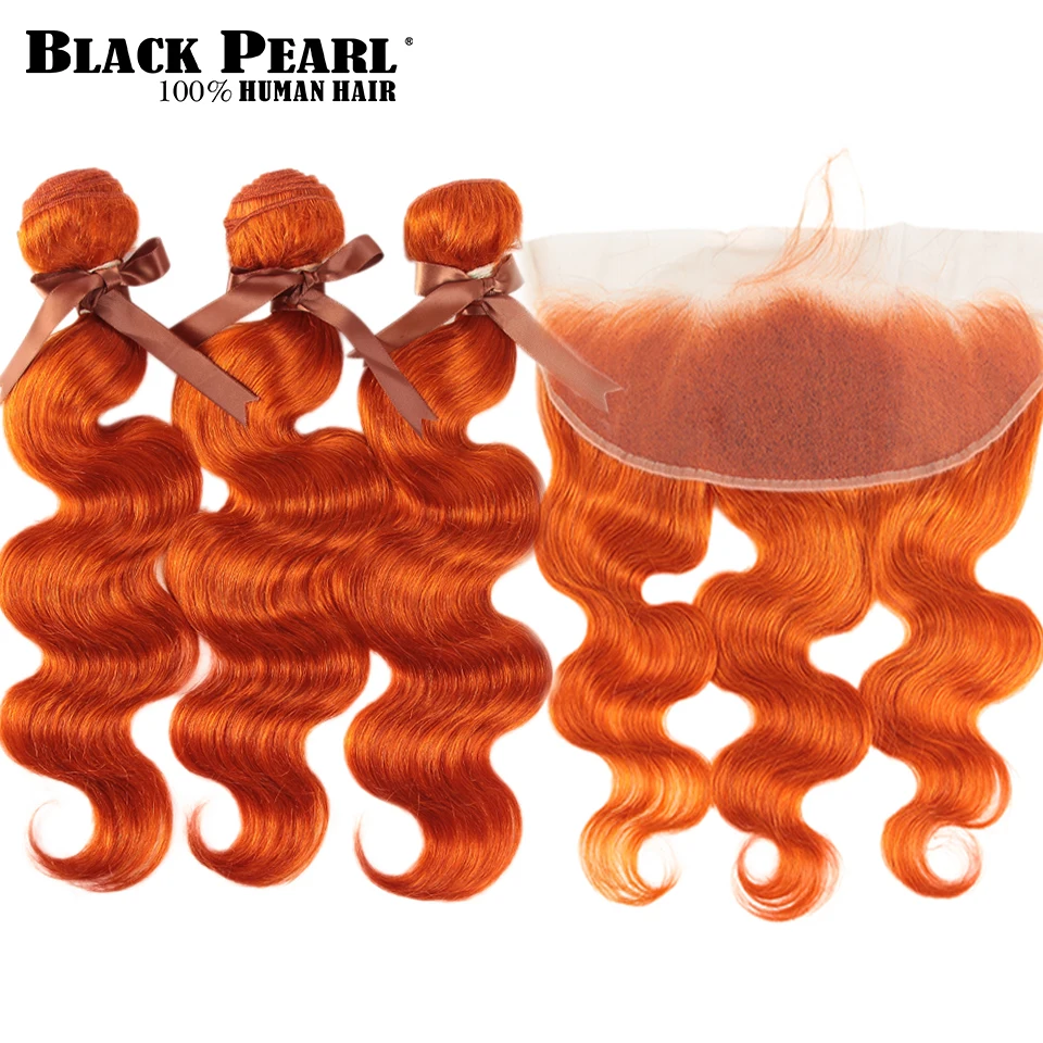 Черные жемчужные оранжевые пряди с фронтальными малазийскими волосами, волнистые пучки, 100% человеческие волосы Remy для наращивания, 4 шт. в одной упаковке