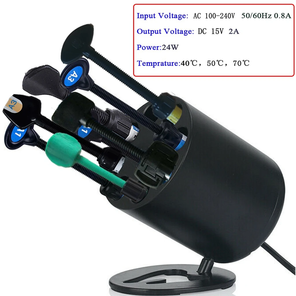 Функция:Используется для нагрева композитного полимерного материала для улучшения его струящегося эффекта; Также может использоваться для нагрева ручного инструмента (ов) для склеивания.С точной схемой для управления нагревательным модулем, температурный допуск контролируется в пределах 1 градуса Цельсия.3-ступенчатый температура: 40, 50, 70 градусов по Цельсию Использование:С помощью кнопки «Вкл/Выкл» для включения/выключения нагревательного корпуса;Выберите требуемую температуру-40, 50 или 70 градусов Цельсия (Температура Нагревательного тела по умолчанию 40 градусов Цельсия);Вставьте композитный полимерный материал (вместе с шприцем)/ручной инструмент (ы) в отверстие нагревательного корпуса; Внимание: затяните крышку шприца при вставке композитного материала из смолы, чтобы предотвратить утечку полимерного материала внутриНагревательный корпус. Очистка и дезинфекция:Все детали можно протереть тканью, смоченной дезинфицирующим средством.Внимание: Не погружайте какие-либо детали в жидкость для дезинфекции; Не автоклав. Технические параметры:Вход Напряжение: 100 ~ 240 В переменного тока, 50/60Hz 0.8AВыходное напряжение: 12 В DC 2AМощность: 24 ВтНастройка Температуры: 40, 50, 70 градусов Цельсия