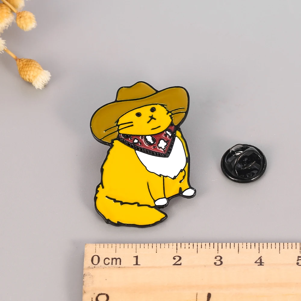 Ковбойский Кот, желтая эмалированная булавка, Мистер Кот, забавное животное, милый ковбойский мультяшный котенок, коллекция Счастливого Рождества, чулок