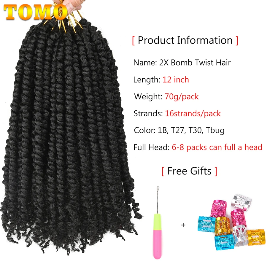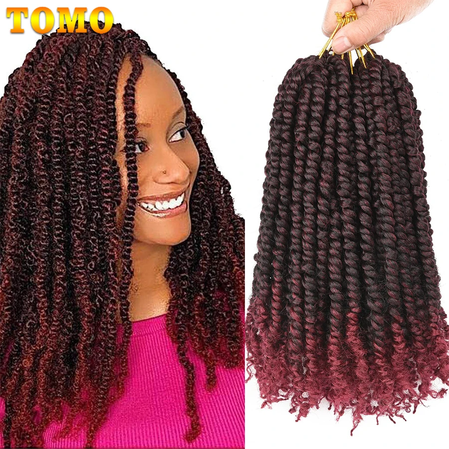 TOMO Bomb твист вязание крючком волосы пружина твист вязание крючком 12 корней предварительно заплетенные мини страсти Твист Синтетические плетеные волосы