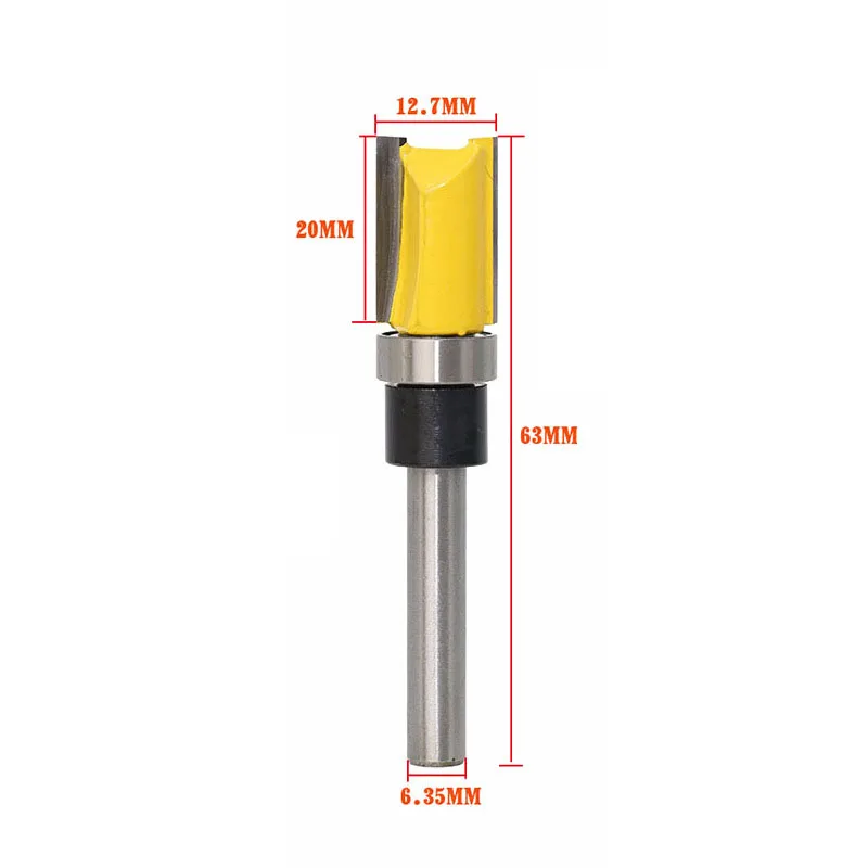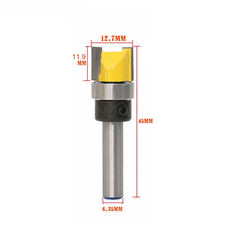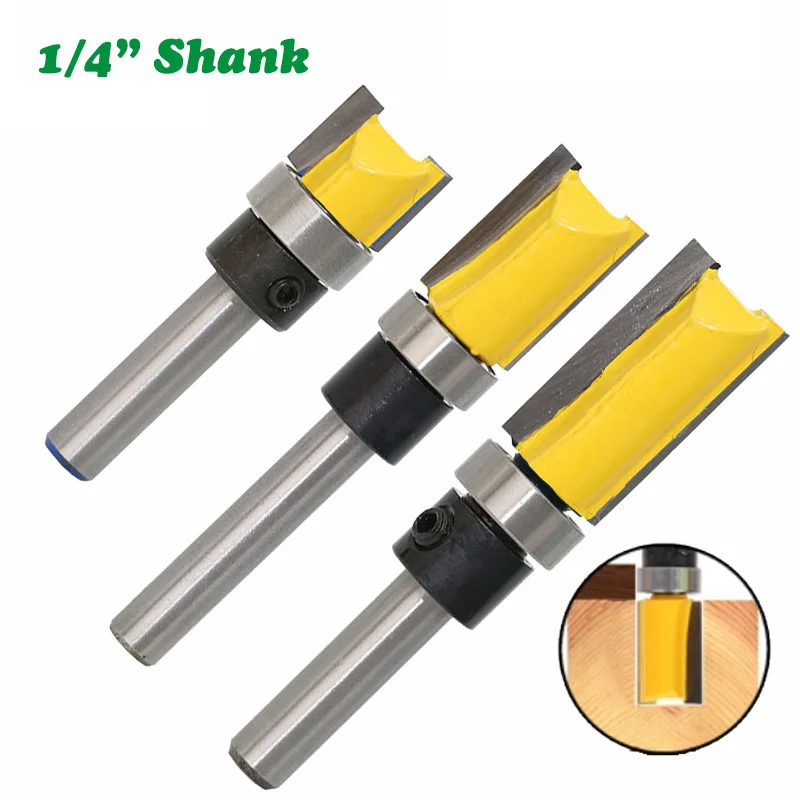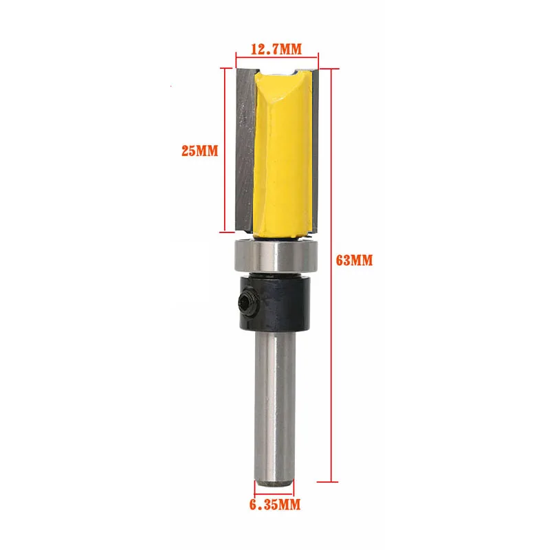 1 шт., Фрезерный резак с хвостовиком 14 "6,35 мм, резьба по дереву, контурная отделка, Концевая фреза, Концевая фреза, насадка с верхним нижним подшипником, кромка с лезвием 12 дюйма
