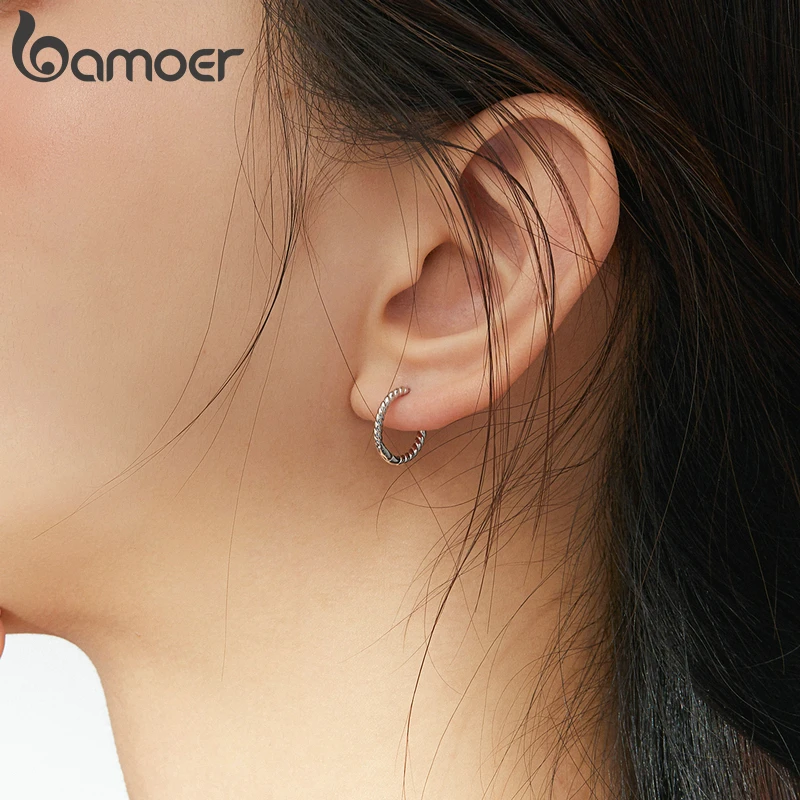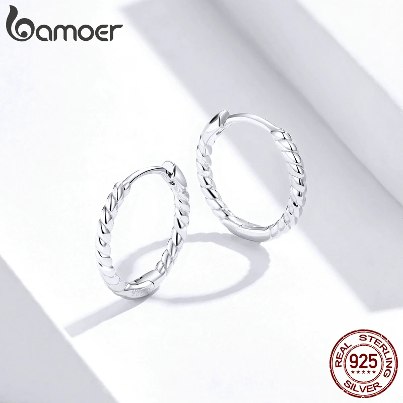 Женские минималистичные серьги-кольца bamoer, серьги из стерлингового серебра 925 пробы с геометрическим дизайном, ювелирные изделия