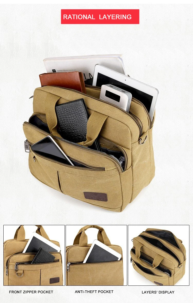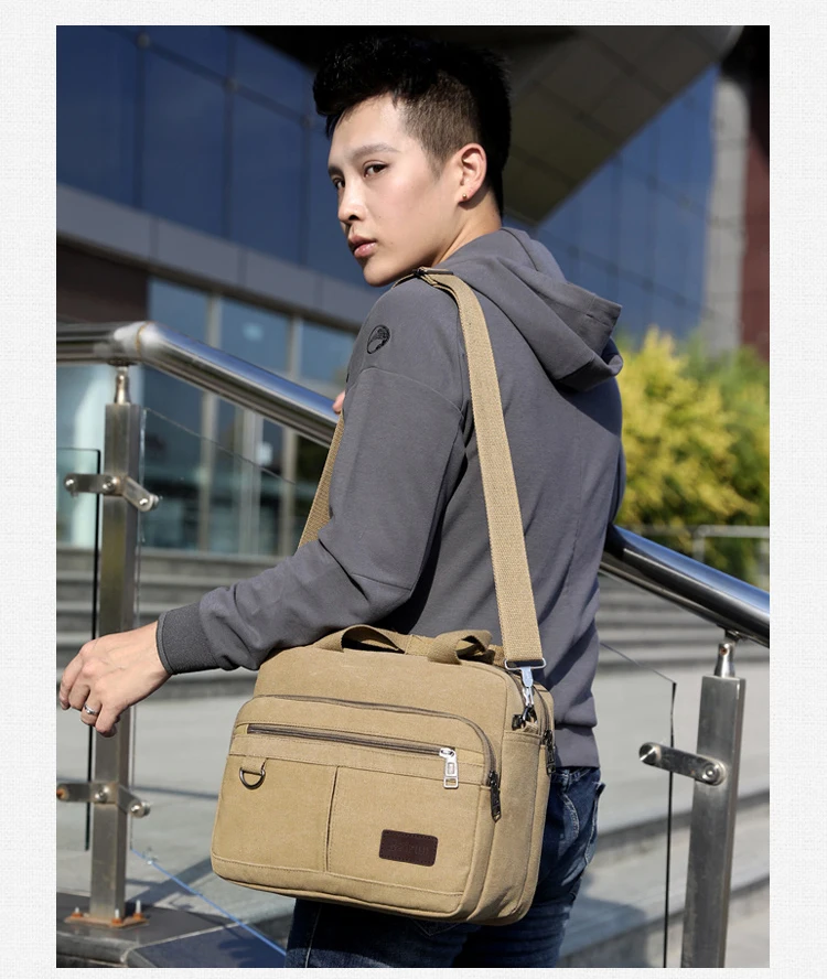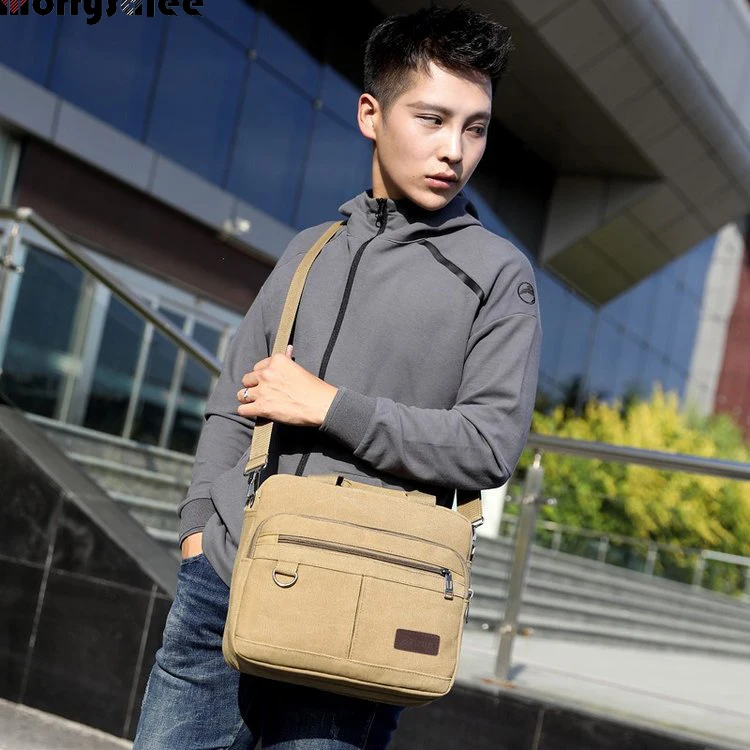 Повседневная Холщовая Сумка через плечо для мужчин, вместительный мессенджер с несколькими карманами, модная мужская сумочка через плечо