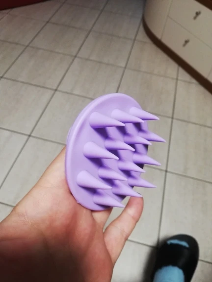 Приятный силиконовый массажер легко достигает кожу головы. Я думаю, что я тоже буду использовать его на сухих волосах. Приятно на ощупь!
