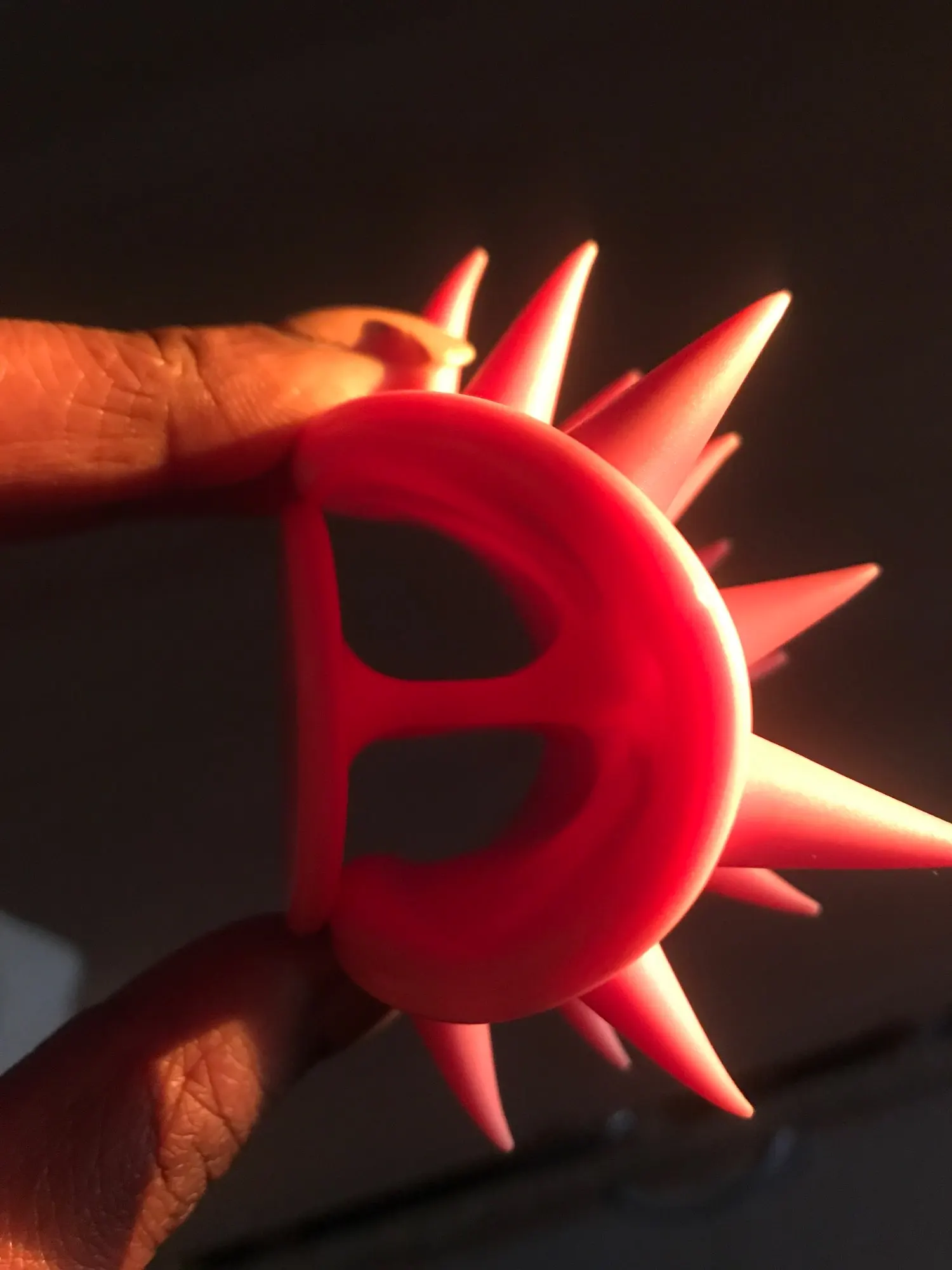 Выглядит точно так же, как на картинке, и цвета также точно соответствуют описанию. Это достойный размер для вашей руки. Шипы достаточно прочные, чтобы не повредить кожу головы. Не имеет никакого запаха или остатка на них, когда вынимается из пакета, который был великолепным. Я купил два, и они выглядят так же.