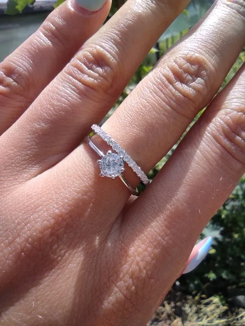 Просто шикарные колечки! Фианиты сверкают очень ярко, сделано всё супер аккуратно и качественно! Размер 6 — это 16.5, а 7 — 17.5. Хорошо, что взяла два размера, 6-й подошёл на безымянный идеально. Проба стоит, в подарок продавец положил салфетку и коробочку. Обязательно буду ещё заказывать в данном магазине!))