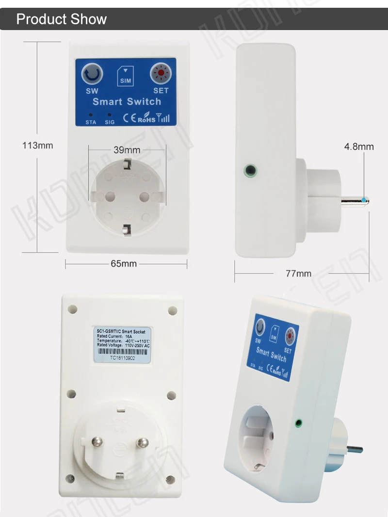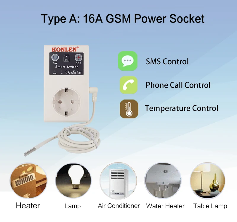 Умная розетка 16 А, GSM, SMS, датчик температуры на выходе, штепсельная вилка, Интеллектуальный релейный переключатель, дистанционное управление для домашней автоматизации