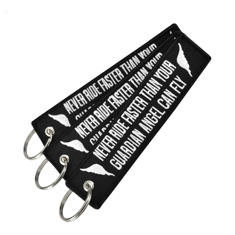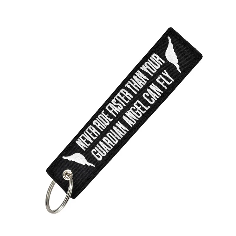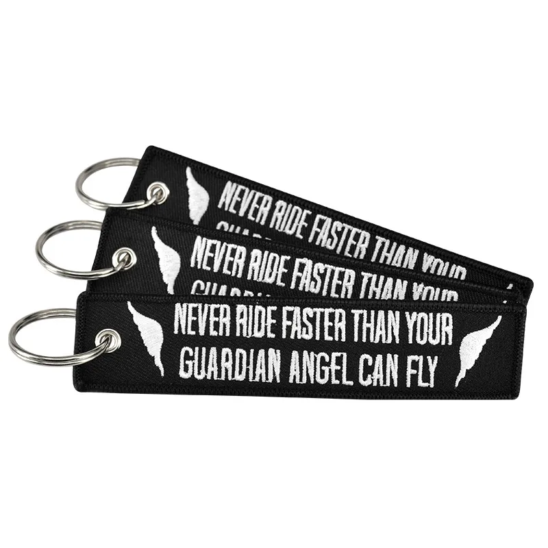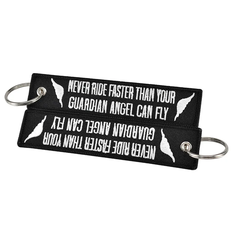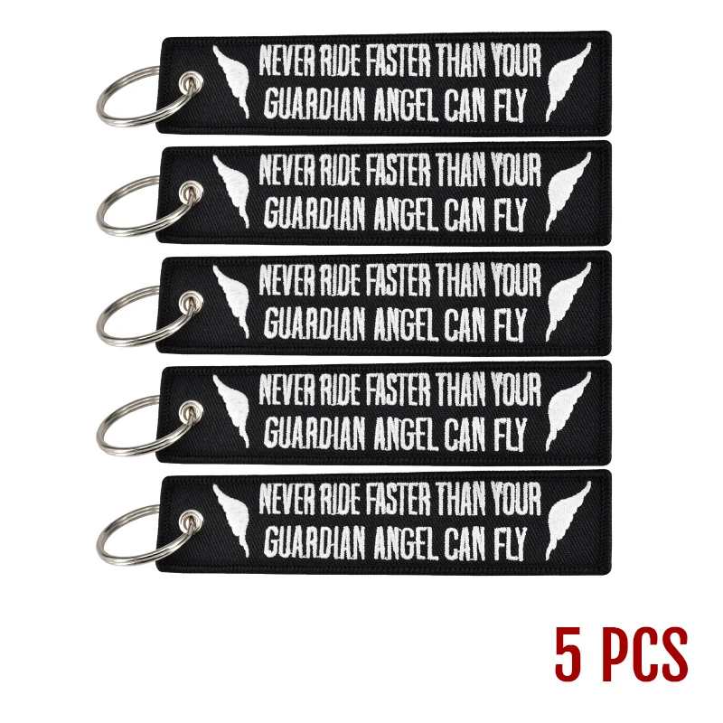 Брелок для ключей 5 шт.лот Chaveiro Bijoux для мотоциклов, брелки с вышивкой OEM, никогда не приезжайте быстрее, чем ваш Ангел-хранитель может летать