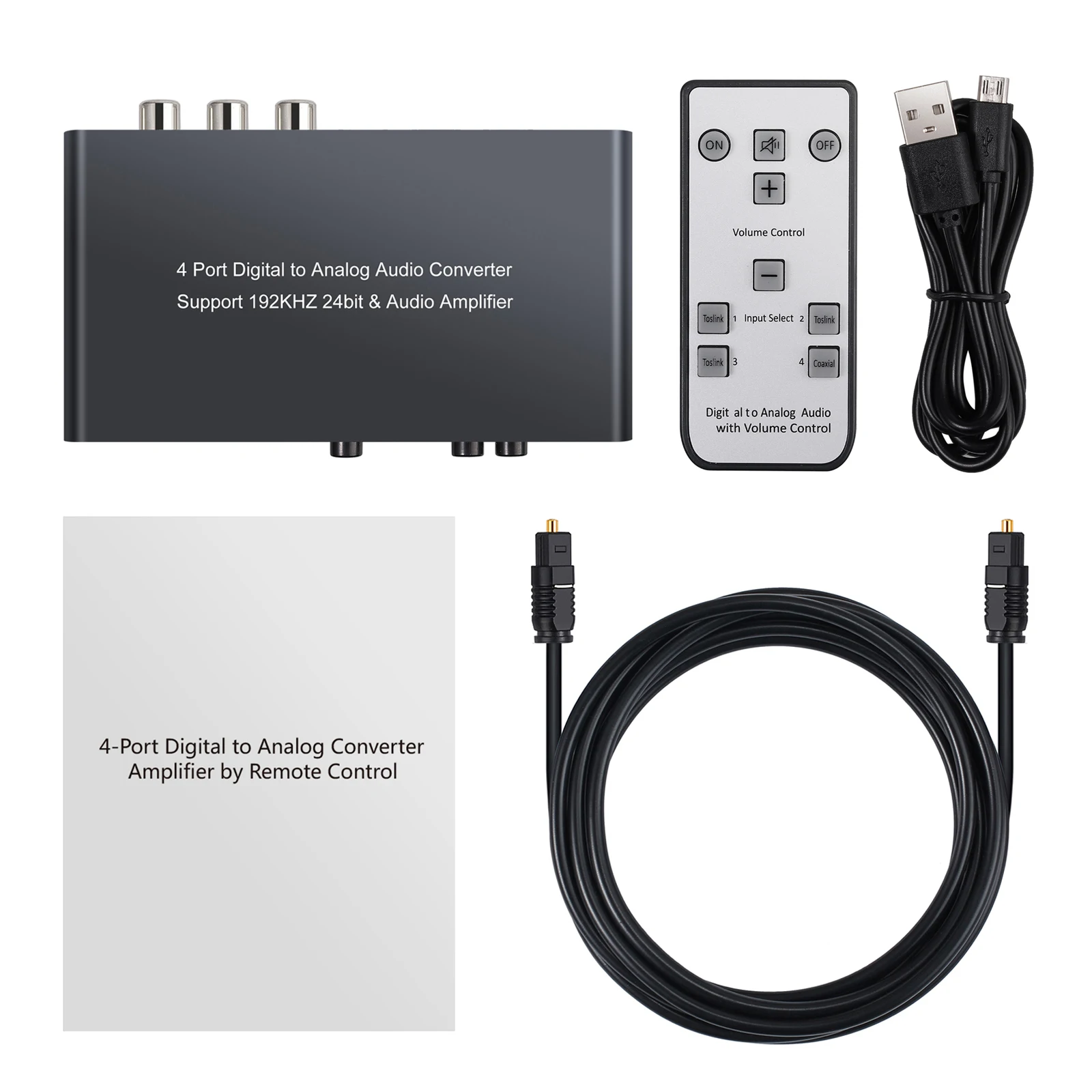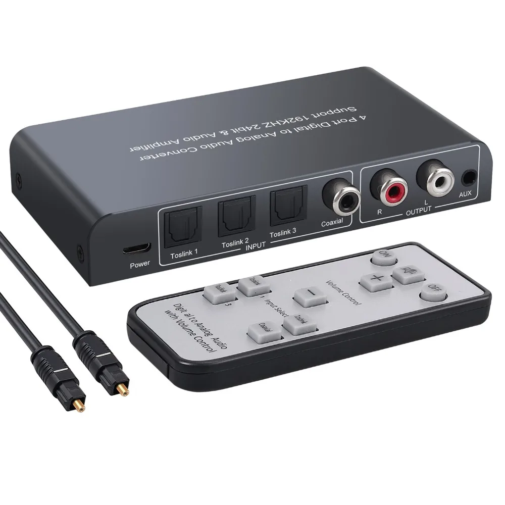 ЦАП-преобразователь eSYNiC 192 кГц с ИК-пультом дистанционного управления, регулировка громкости, коаксиальныйToslinkоптический в аналоговый LR RCA, аудиоадаптер 3,5 мм