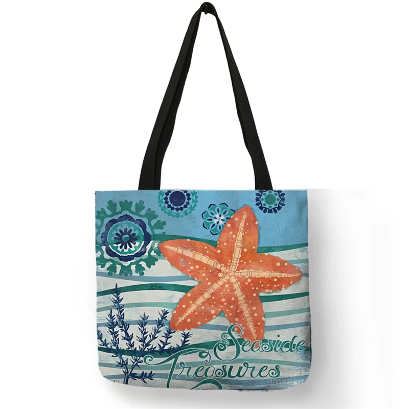 B13059 эко хозяйственная сумка ретро Морская жизнь морская лошадь оболочка печать сумка на плечо для женщин леди