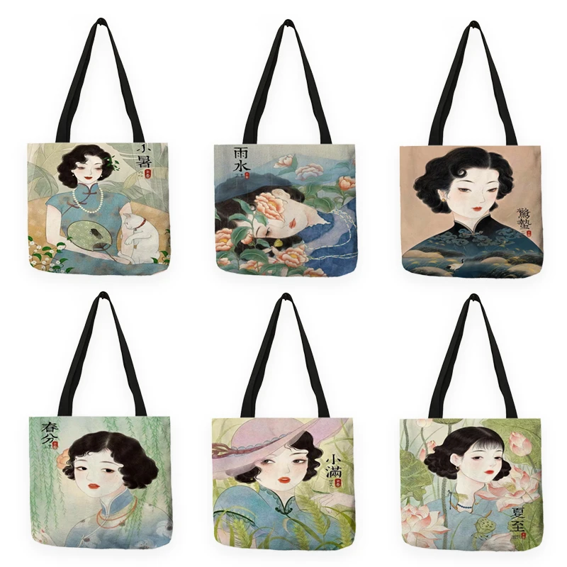 Льняные многоразовые сумки для покупок с принтом для девочек желани...