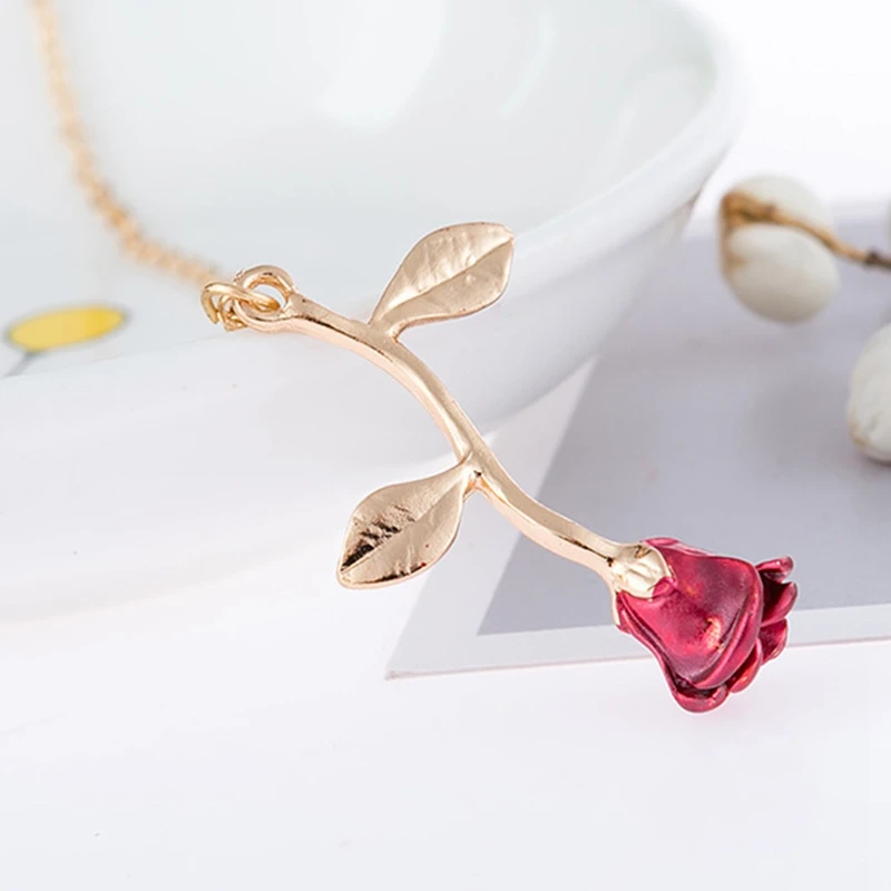 Рождественский подарок, новое ювелирное изделие, нежная подвеска в виде красной розы, ожерелье для подруги, подарок на день Святого Валентина