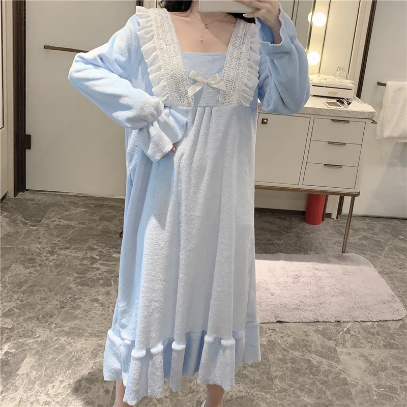 Ночная рубашка женская кружевная в стиле пэчворк, с квадратным вырезом, милая элегантная свободная длинная рубашка принцессы с принтом, в винтажном стиле, с расклешенным рукавом