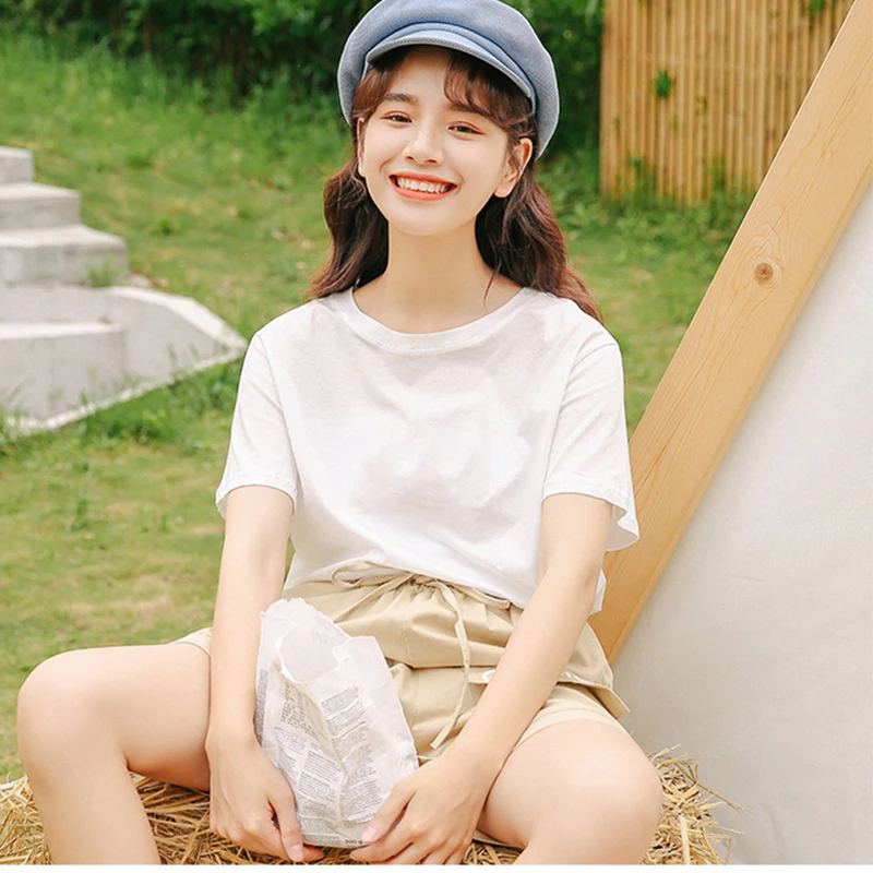 Новая футболка в стиле Харадзюку, 4 однотонная Базовая футболка, Женский повседневный летний топ с круглым вырезом для друзей, Корейская хипстерская уличная одежда, белая футболка
