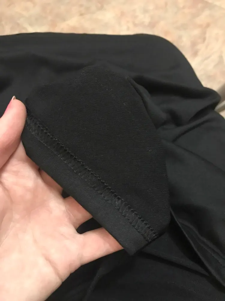 ожидала немного другого материала и прямого кроя, а так в принципе как на фото, прошито ровно, запаха неприятного нет