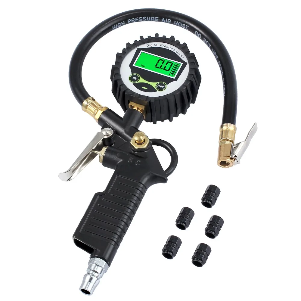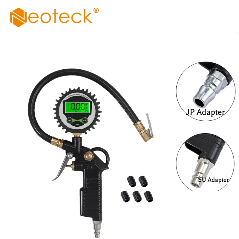 Цифровой манометр Neoteck, 0-200 PSI с 5 черными крышками клапанов, для автомобиля, с манометром