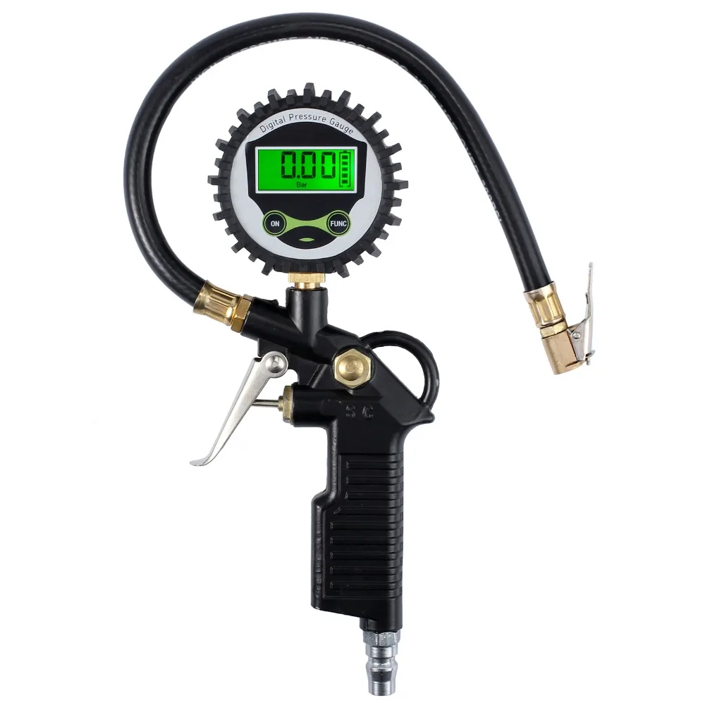 Товар доставлен в Украину за 2 недели. Цифровой дисплей очень удобный по сравнению со стрелочным. Хорошо видны показания в темное время за счет подсветки дисплея. Цифровой дисплей позволяет точнее определять величину давления, т.к. на стрелочном манометре толщина стрелки сравнима с шириной одного деления шкалы. В остальном конструкция пистолета стандартная, все работает. Спасибо продавцу.