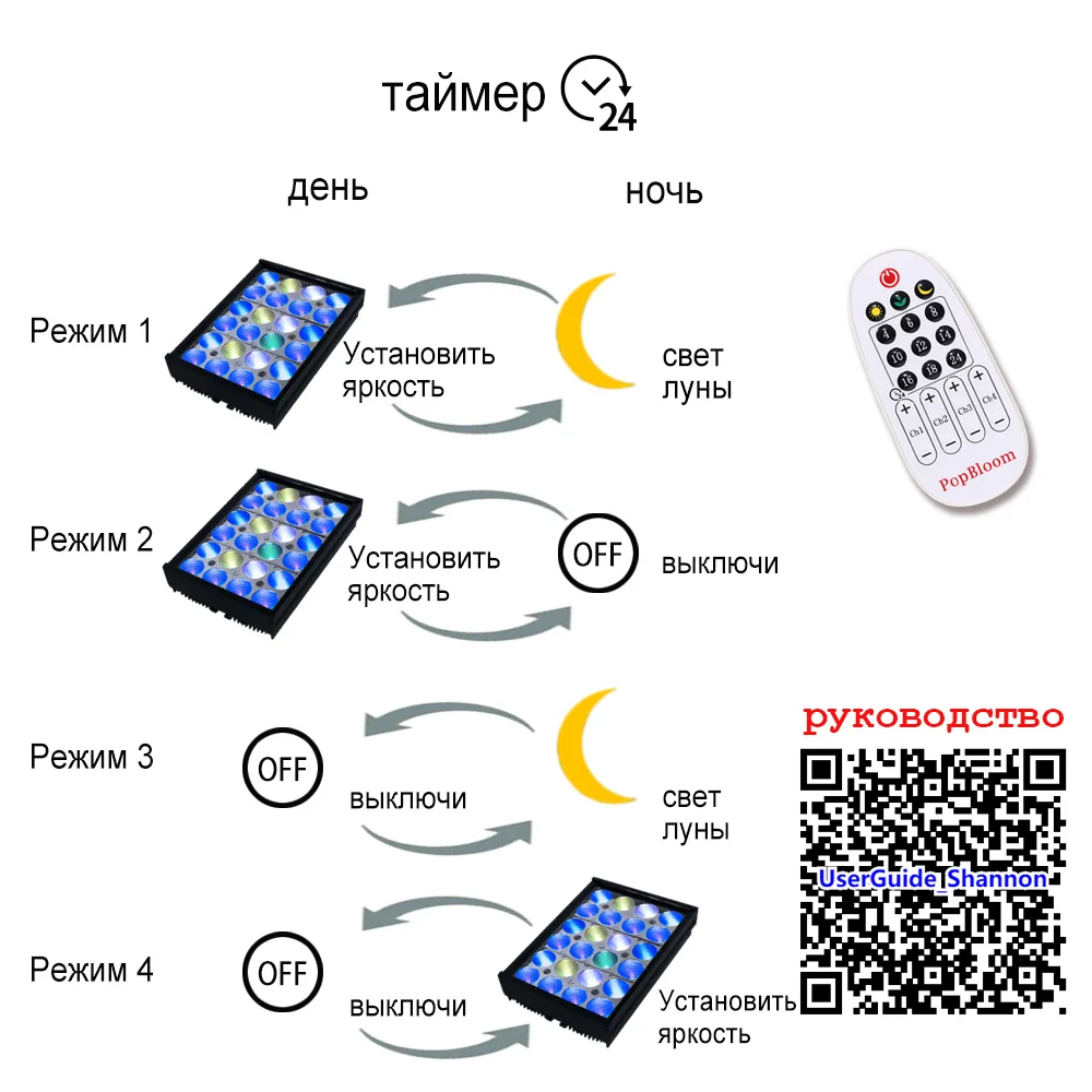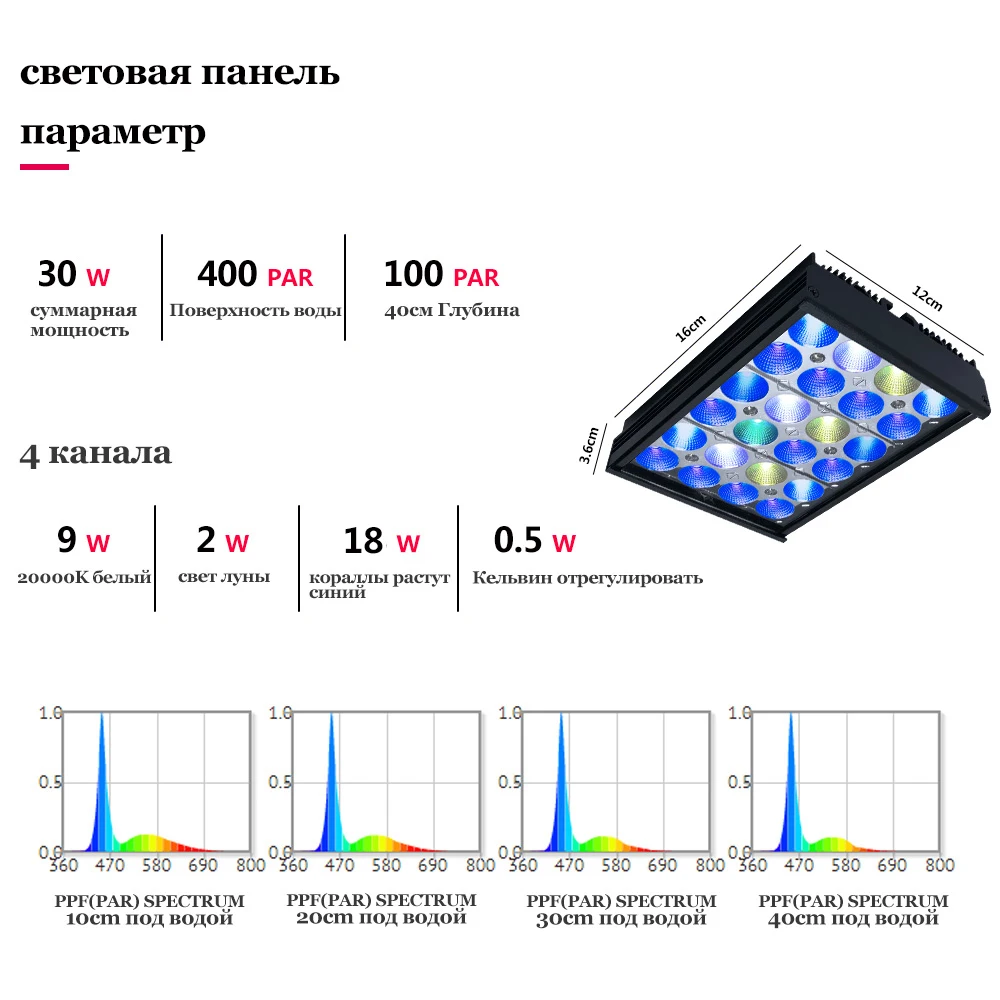 За свои деньги светильник очень хороший,беру уже такой второй ,доставка 2-3 дня до дома курьером,Кораллы чувствуют себя под ним хорошо,Настройки не самые обширные ,но все основное настраивается,Настройка правда неочень удобная но разобраться можно,поэтому рекомендую продавца,очень общительный и отзывчивый,рекомендую.