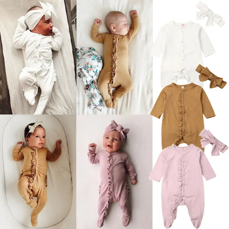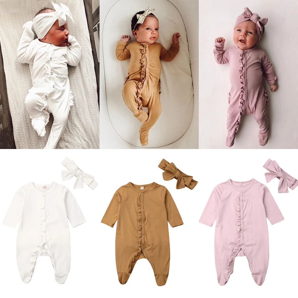 Комбинезон детский, для мальчиков и девочек, однотонный, с оборками, для новорожденных, весна, 2020