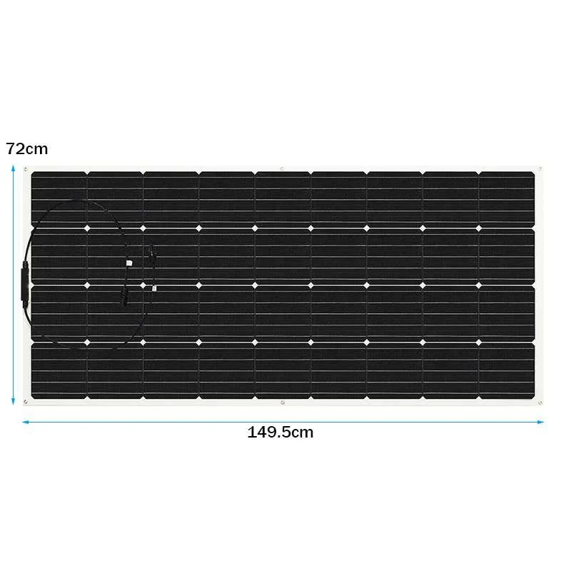 Солнечная панель 200 Вт Особенности: Высокая эффективность, коэффициент конверсии 21-23%, Гибкий, подходит для поверхностного монтажа. Светильник вес, простота установки и обслуживания. Широкий спектр адаптации: Зарядка автомобилей, лодок, крыш, на открытом воздухе, горы, пастбища и т. Д.