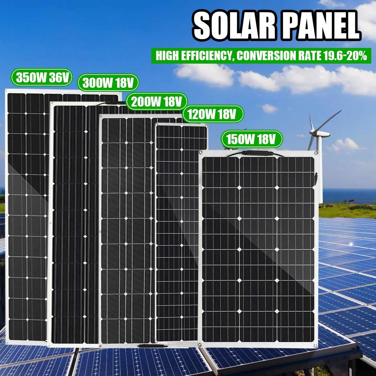 Полугибкая солнечная панель 350 Вт-120 Вт, 18 в, 36 В, USB солнечная батарея, модуль питания сделай сам, открытый разъем, зарядное устройство для аккумуляторов, для RV, лодки